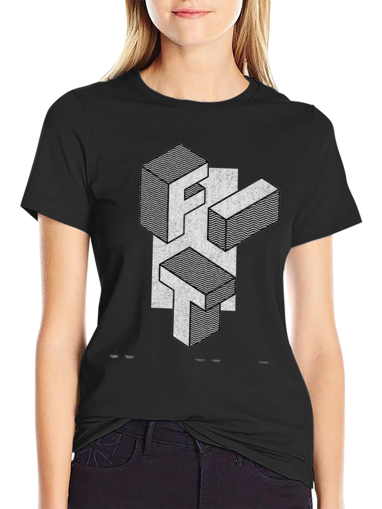 Elevate your casual style with this eye-catching black t-shirt. Featuring a unique abstract geometric print composed of the letters F, K, and T in a modern design, this shirt is sure to turn heads. The graphic has a distressed or textured effect. Made from a soft, breathable fabric, this tee offers all-day comfort and a relaxed fit. Perfect for everyday wear, concerts, or casual outings. Pair it with jeans, shorts, or chinos for a versatile look. Add a touch of artistic flair to your wardrobe with this standout t-shirt.