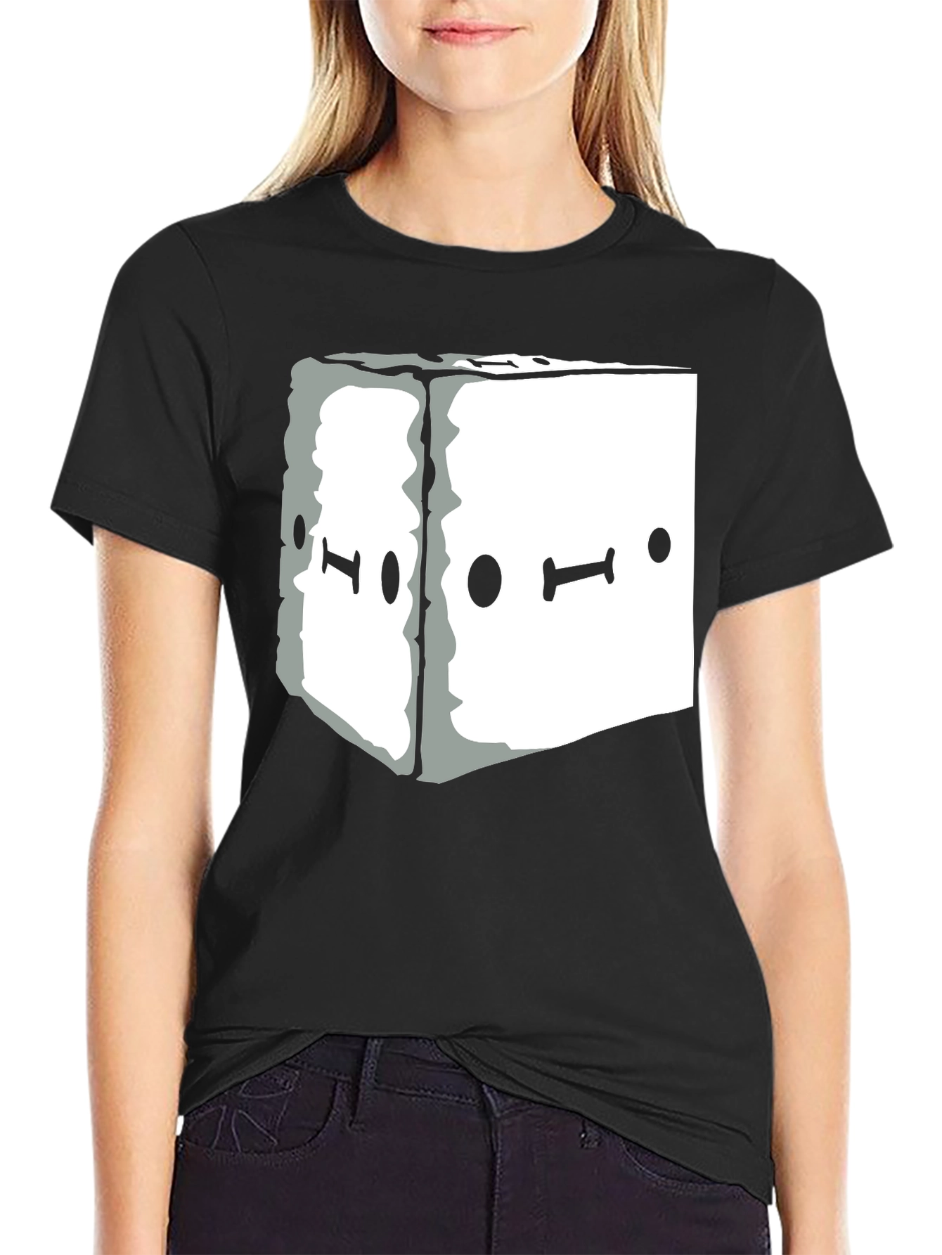 Show off your unique style with this black unisex t-shirt featuring an eye-catching abstract graphic. The design prominently displays a playful, cube-like character with a minimalist facial expression. This tee is crafted from a comfortable material, perfect for everyday wear. Its classic fit makes it a versatile addition to any wardrobe. Dress it up with a jacket or keep it casual with jeans or shorts. Ideal for those who appreciate modern art and whimsical designs, this t-shirt is sure to make a statement wherever you go. Upgrade your wardrobe with this standout piece that blends comfort, style, and artistic flair.