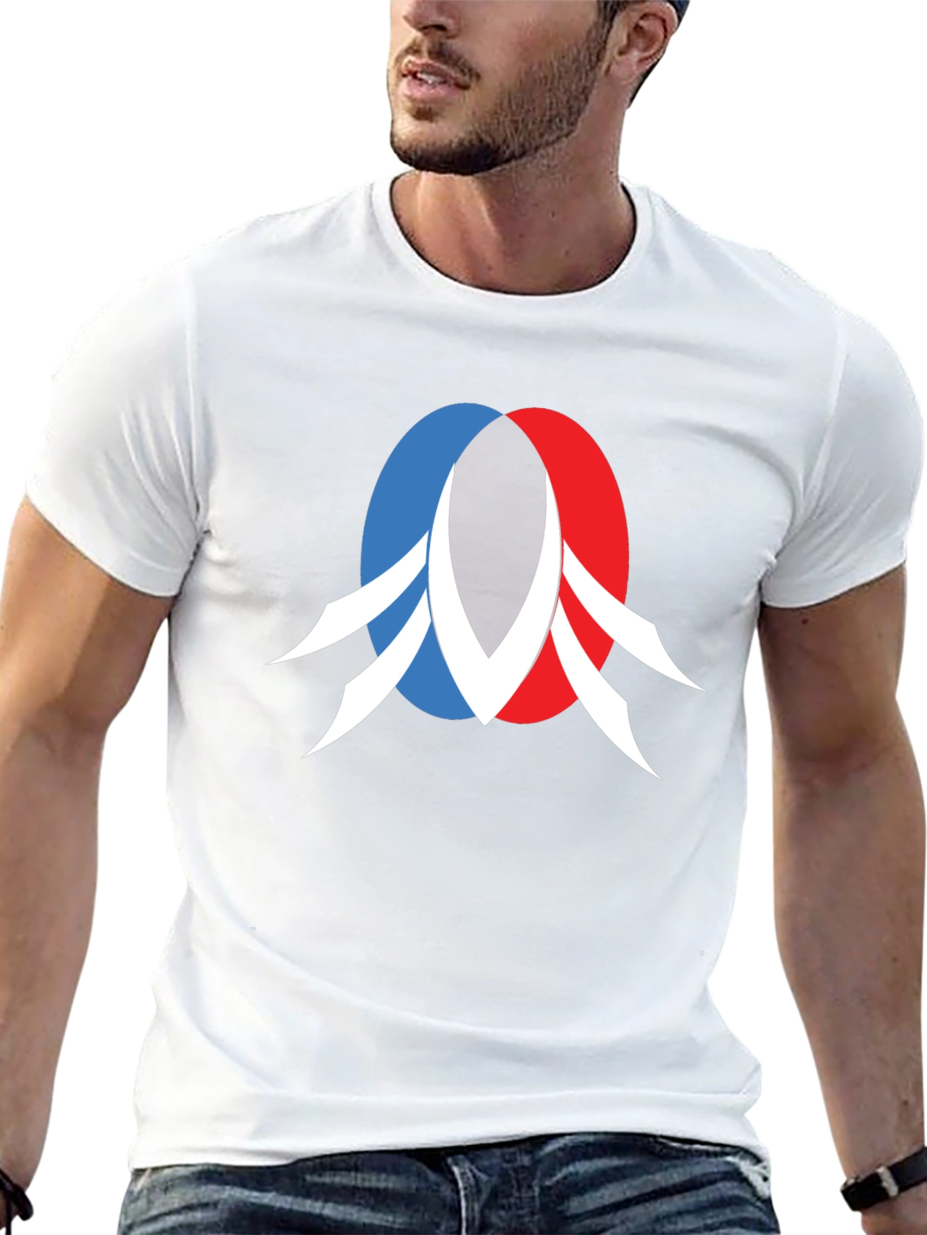 Showcase your unique style with this eye-catching black t-shirt. This shirt features a striking abstract logo on the chest, designed with overlapping red and blue circles and sharp white elements. Made from a comfortable, breathable fabric, it's ideal for everyday wear. The bold design makes it a perfect statement piece. Whether you're dressing up for a casual outing or just relaxing at home, this t-shirt combines comfort and modern aesthetics.