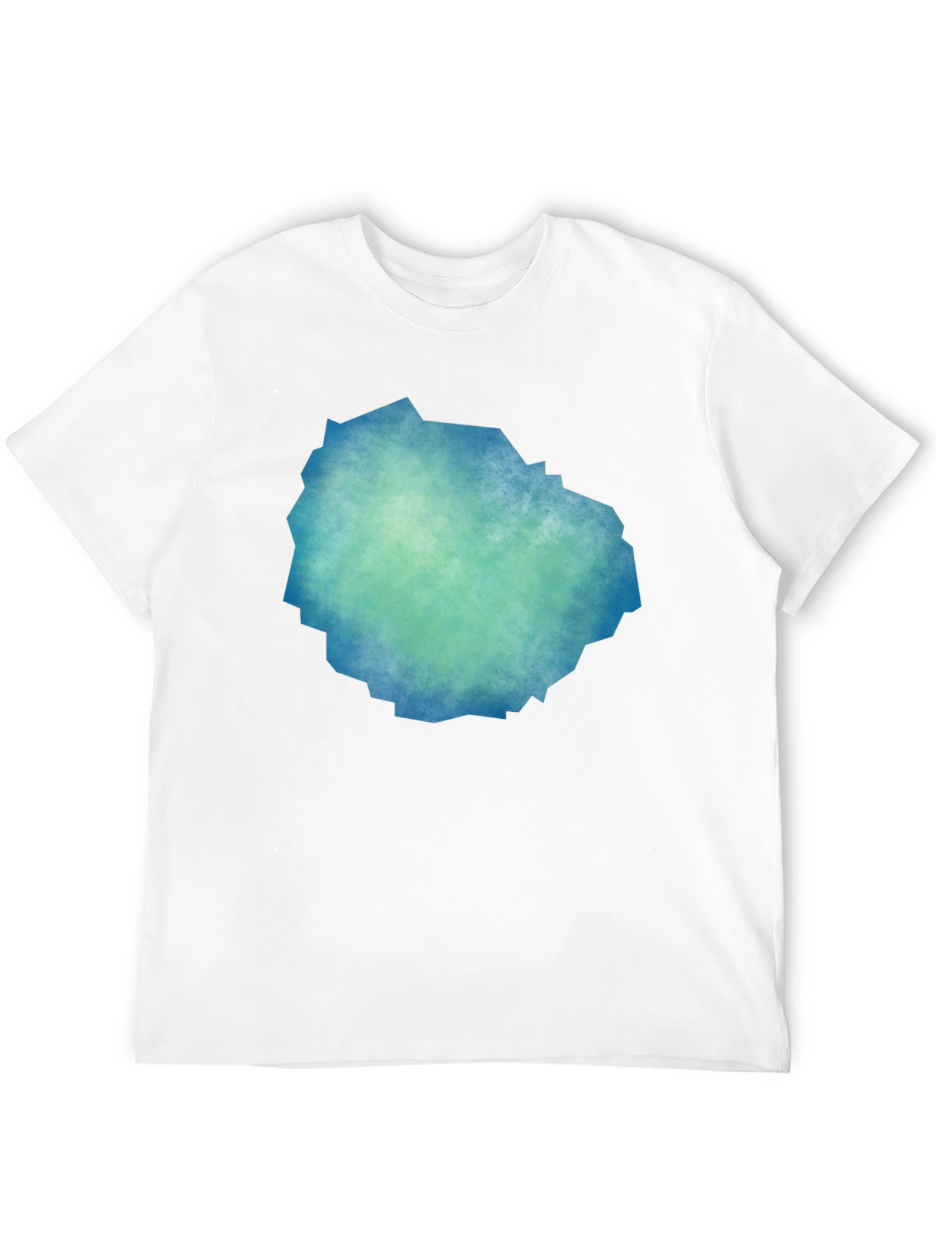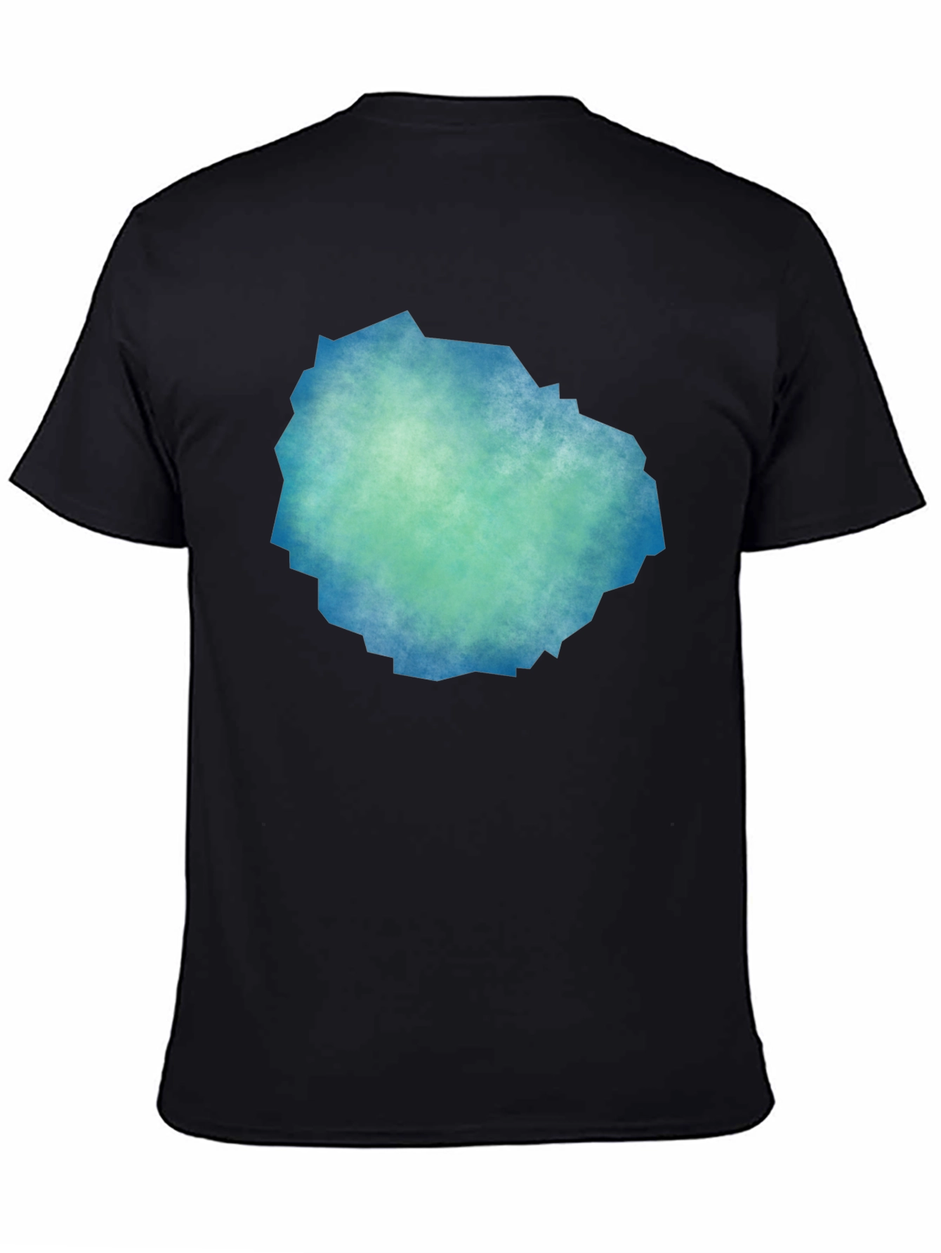 This striking black t-shirt features a unique abstract design in shades of teal and blue. The graphic is eye-catching and modern, making it a versatile addition to any wardrobe. Crafted from a comfortable-looking material, this tee is ideal for casual wear, concerts, or adding a pop of color to your everyday style. Pair it with jeans, shorts, or layer it under a jacket for a cool and effortless look. Show off your unique style with this standout graphic tee.