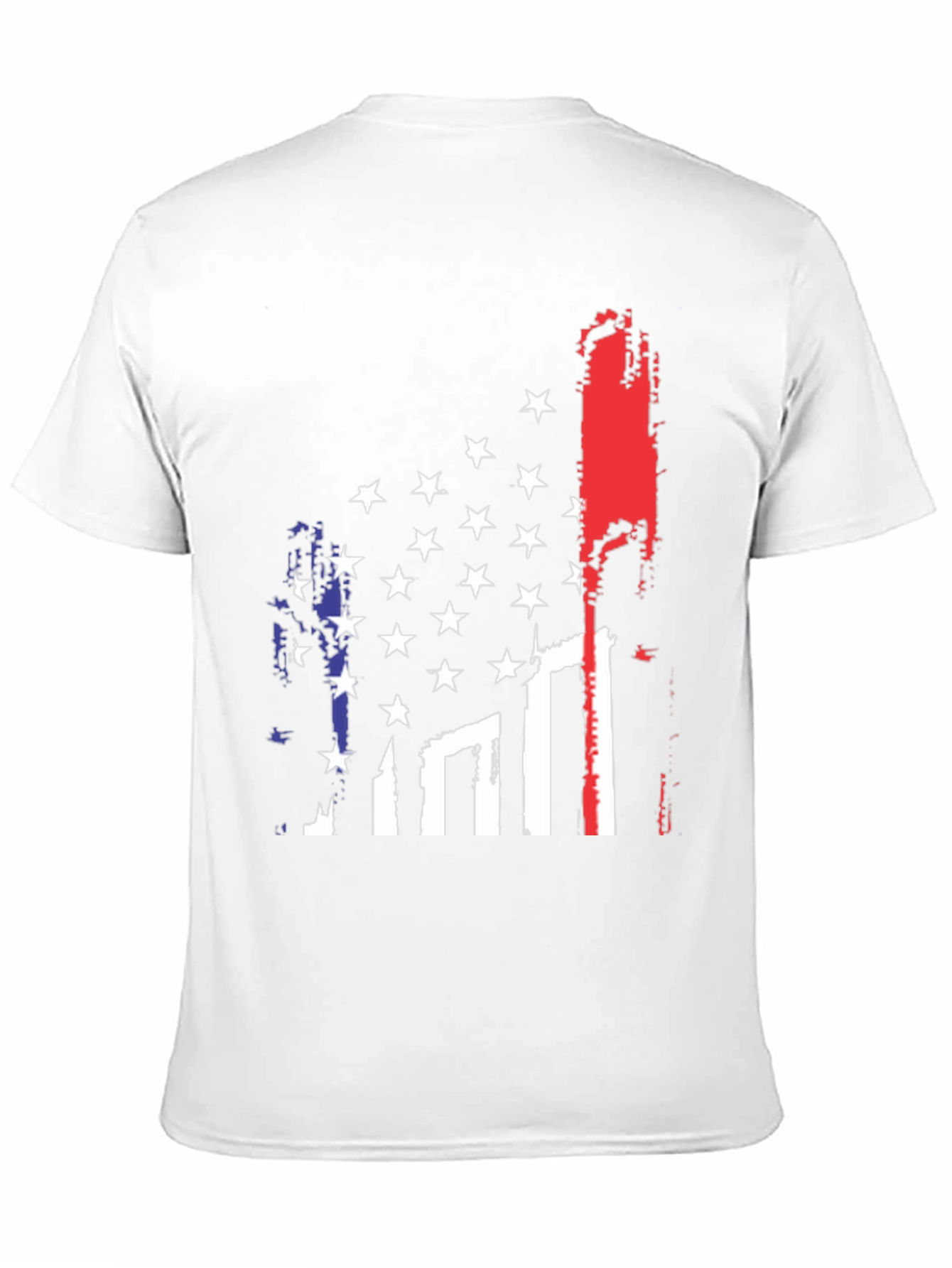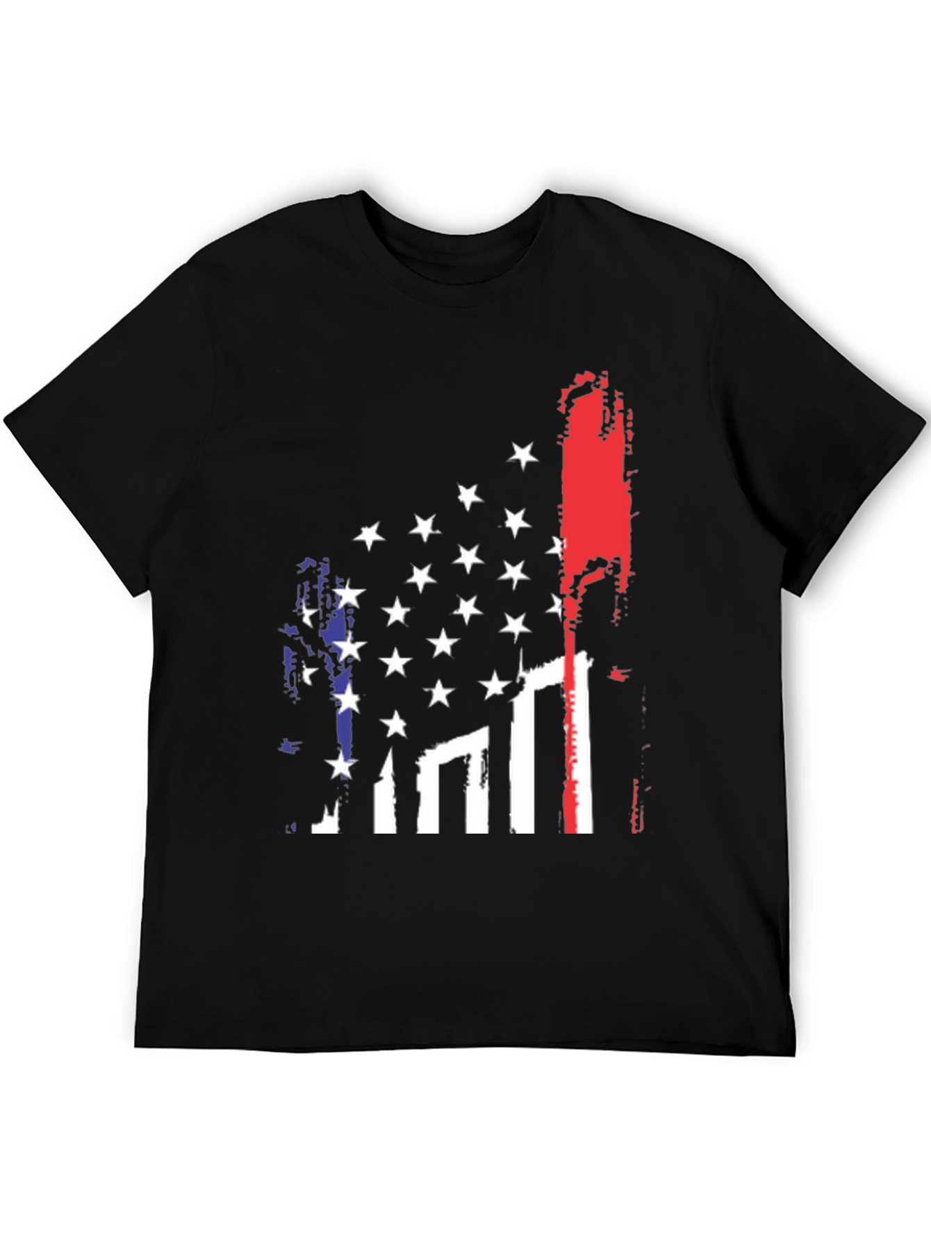 Show your American pride with this eye-catching graphic tee. Featuring a stylized American flag design with distressed details, this black t-shirt offers a unique and patriotic look. The design incorporates stars, stripes, and a hint of blue and red for a vintage feel. Made from a comfortable and breathable fabric, this tee is perfect for everyday wear or special occasions like Independence Day celebrations, Veteran's Day, or showing your support at rallies. Its bold graphic and comfortable fit make it a standout piece in any casual wardrobe. Durable and stylish, this tee is a great way to express your love for your country. Get yours today!