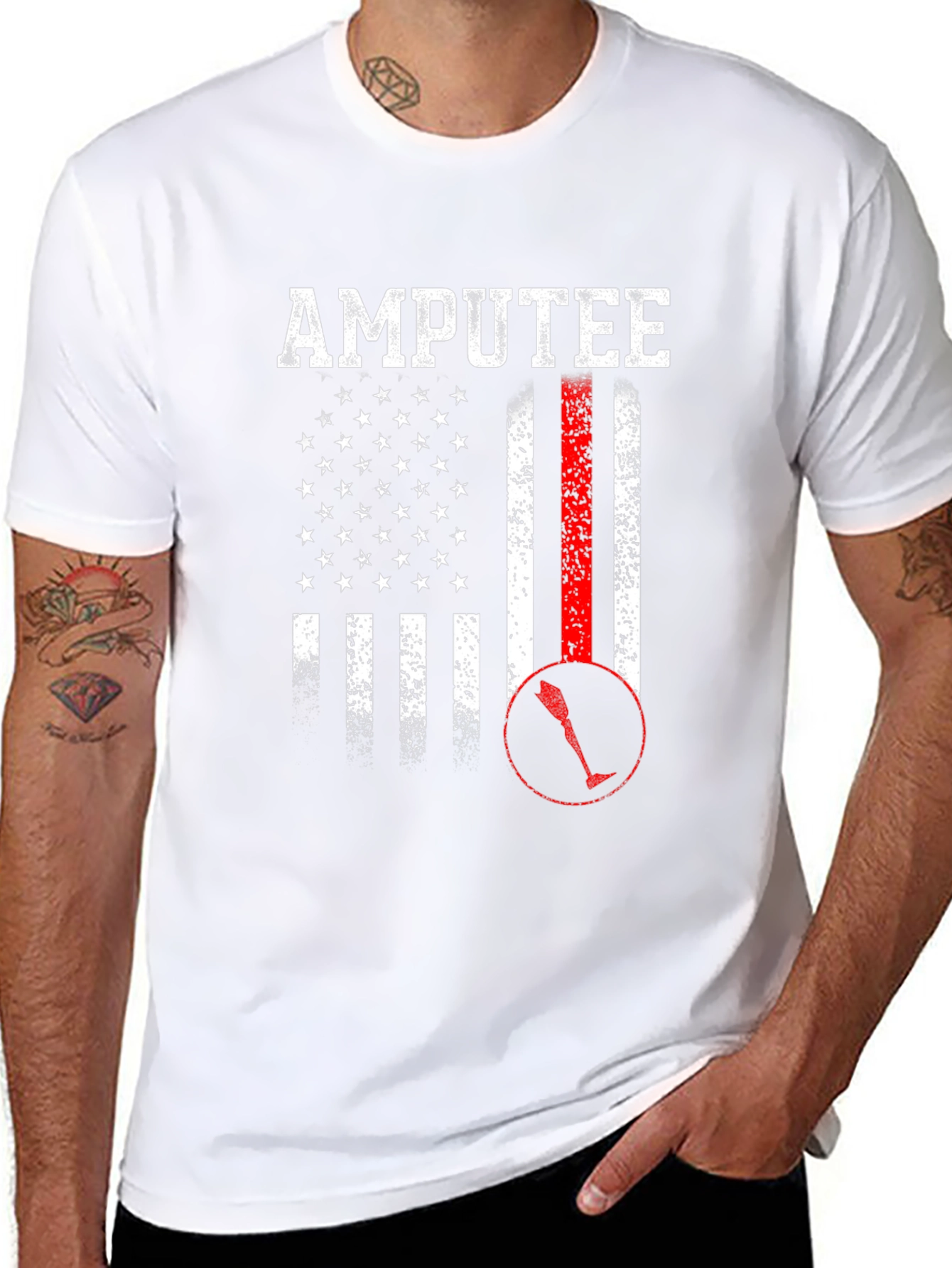 Show your support with this unique graphic tee. This black t-shirt features a distressed American flag design with a bold "AMPUTEE" text above it. A red line and a prosthetic limb graphic add a powerful visual element. Made from comfortable materials, this shirt is perfect for everyday wear, support events, or casual outings. It's a great way to raise awareness and show solidarity. Get yours today and make a statement!