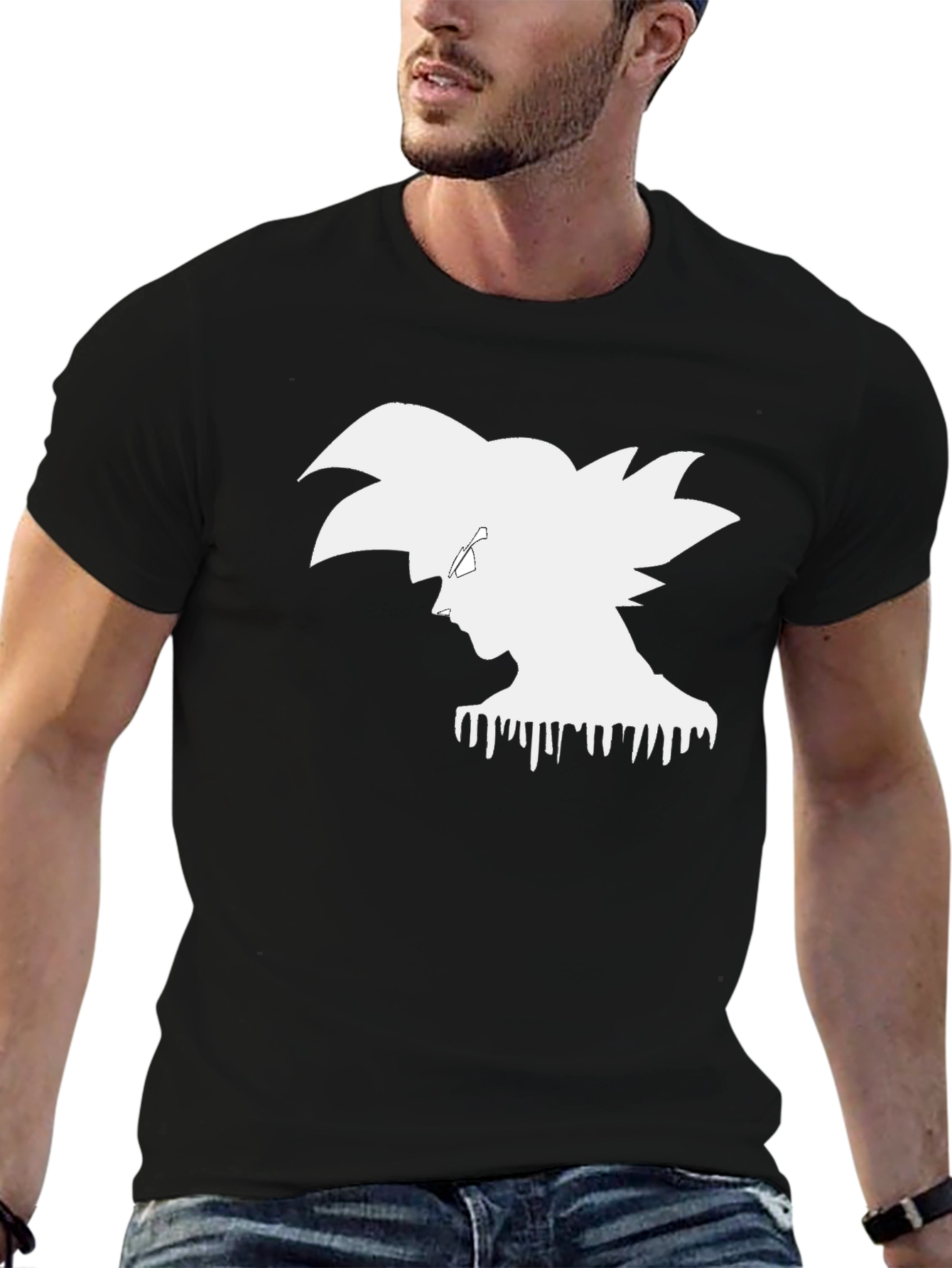 This stylish black tee features a striking white silhouette graphic, perfect for fans of anime and unique designs. The bold image stands out against the dark background, creating a visually appealing contrast. Made from a comfortable fabric, this t-shirt is ideal for casual wear, offering both style and comfort. The design showcases a recognizable figure with a distinctive hairstyle, enhanced with an artistic dripping effect at the base. Whether you're heading out with friends or relaxing at home, this tee is a great way to express your personality and love for anime culture. A must-have addition to any anime enthusiast's wardrobe.