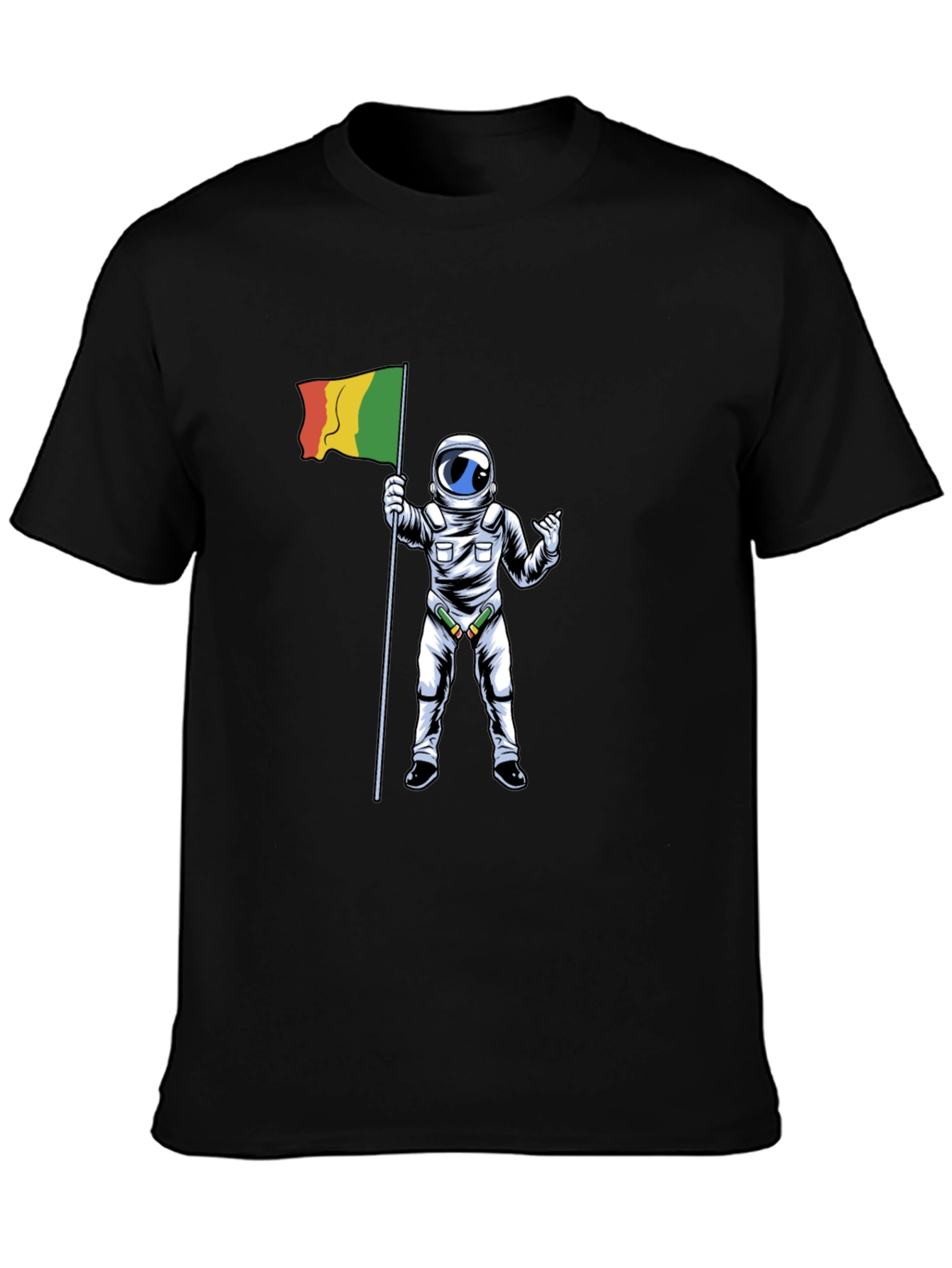 Show your space pride with this unique black graphic tee! Featuring a detailed astronaut illustration holding a flag, this t-shirt is perfect for anyone who loves space exploration or wants to make a statement with their style. Made from comfortable, breathable fabric, this tee is ideal for everyday wear. The bold graphic print ensures you'll stand out from the crowd. Whether you're heading to a casual hangout or exploring the city, this astronaut tee is a stellar choice. Accessorize it with your favorite jeans or shorts for a fun, casual look.