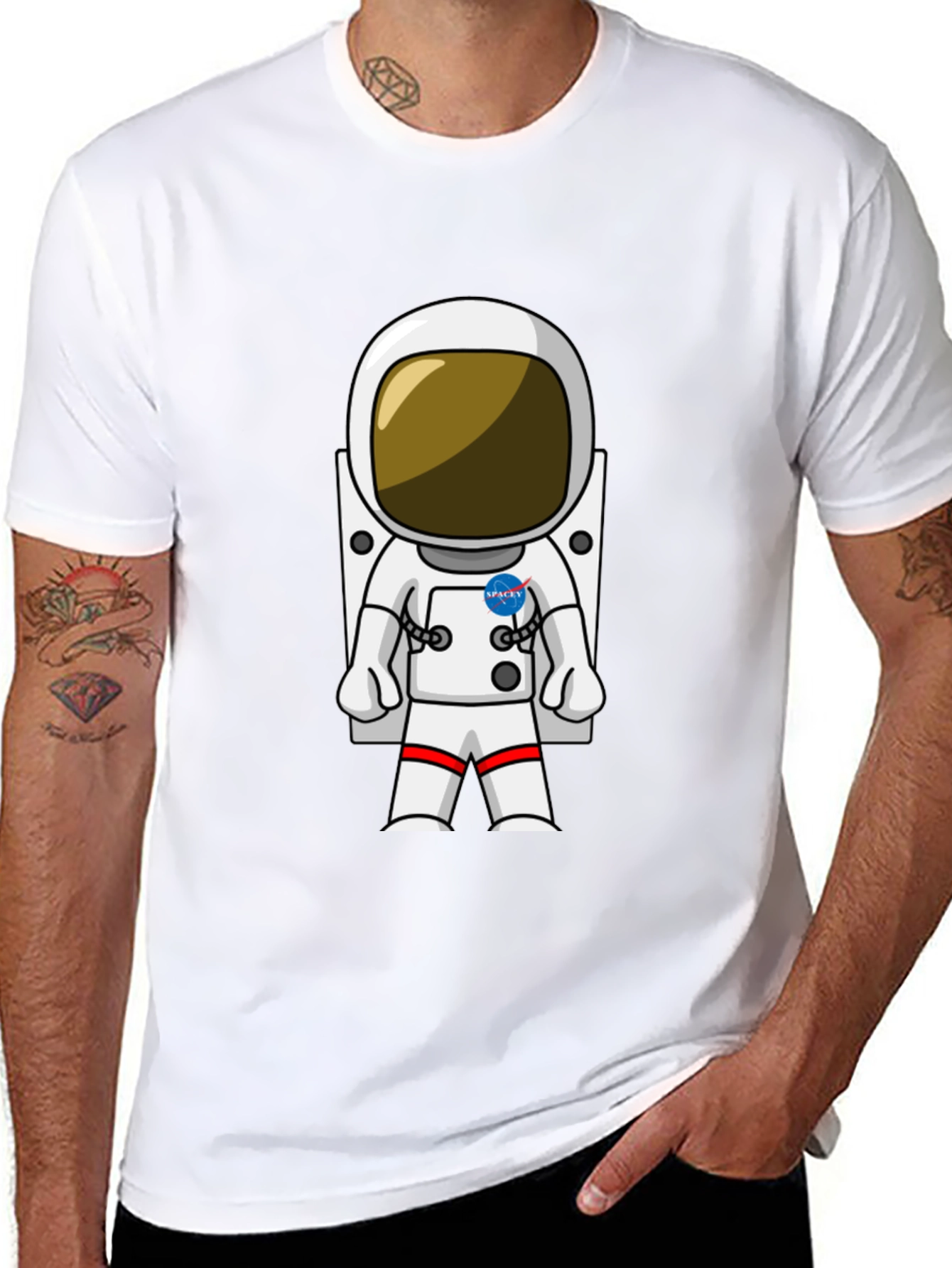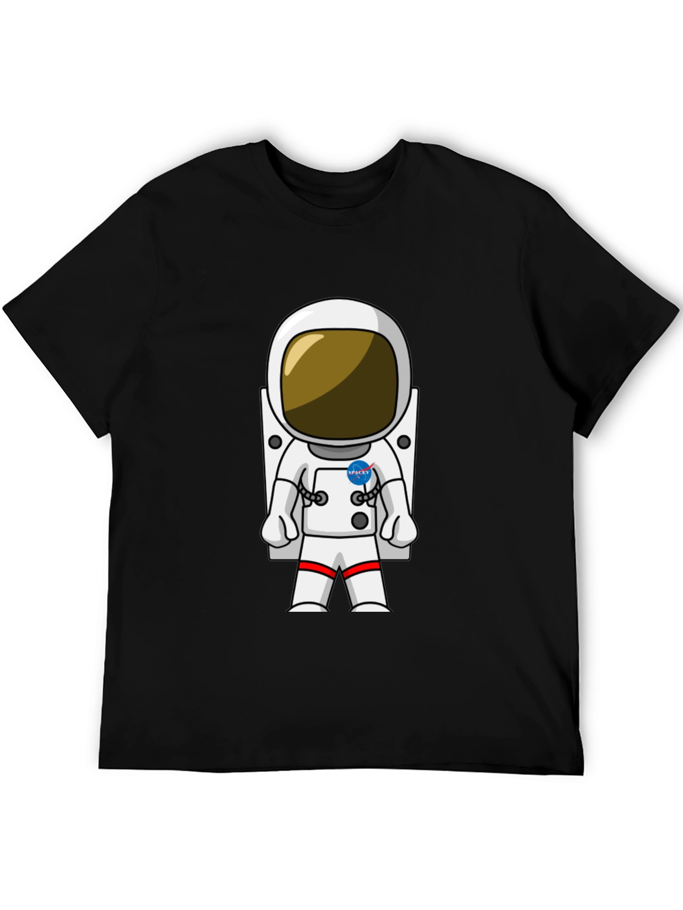 Reach for the stars with this fun and stylish astronaut graphic tee. Made from soft, breathable fabric, this black t-shirt features a vibrant cartoon astronaut design. The spaceman is rendered in crisp detail, creating a playful and eye-catching look. This tee is perfect for casual wear, space enthusiasts, or anyone who loves unique and expressive clothing. Show off your adventurous side with this comfortable and cool statement piece! Great for everyday wear or as a gift for the space lover in your life. A must-have addition to any wardrobe.
