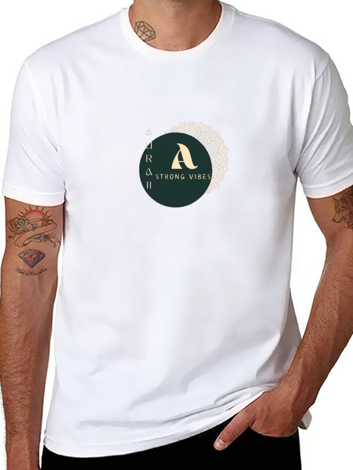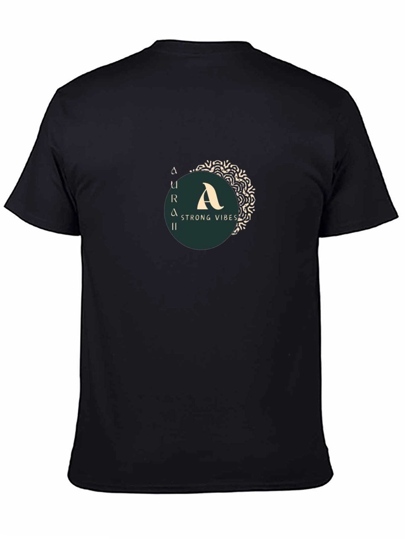 Embrace positive energy with our Aura Strong Vibes T-Shirt. This stylish black tee features a unique circular graphic design, showcasing an elegant "A" emblem surrounded by radiating, mandala-inspired patterns. The soft, breathable fabric ensures all-day comfort, making it ideal for casual wear or layering under a jacket. Show off your individual style with this statement piece. Perfect for yoga sessions, coffee dates, or simply expressing your good vibes. Spread positivity wherever you go with this eye-catching and comfortable t-shirt.