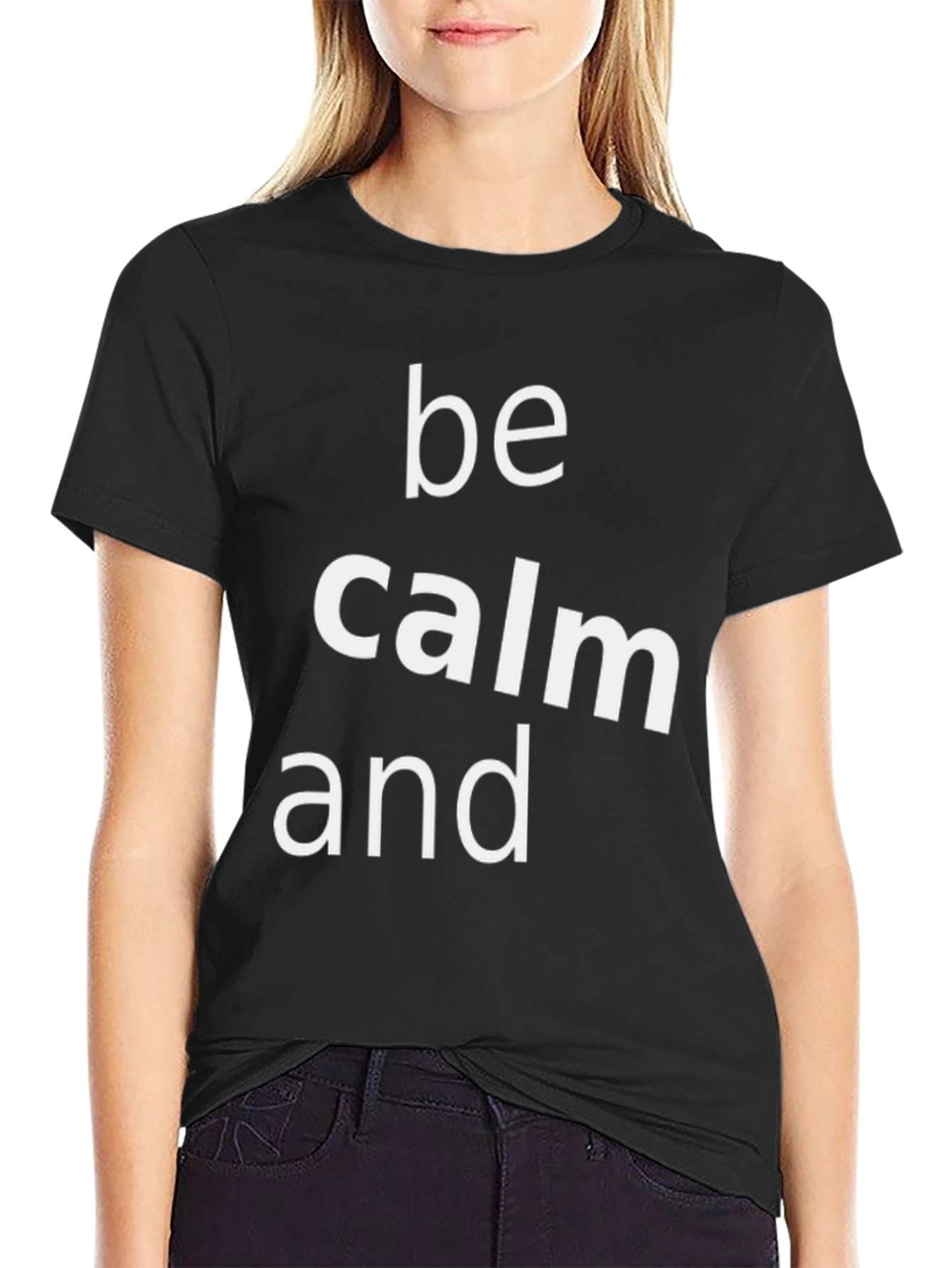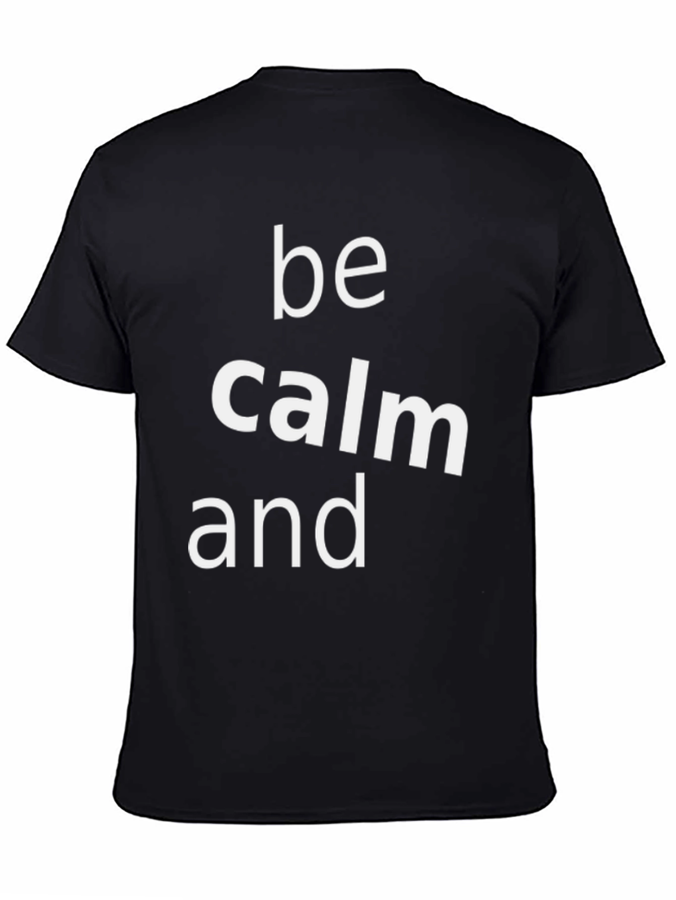 Stay cool and collected with this classic black t-shirt featuring the playful message "Be Calm and...". The simple design makes a statement, and the comfortable fit ensures all-day wearability. The tee is made from soft, breathable fabric. Ideal for casual outings, lounging at home, or expressing your laid-back attitude, this t-shirt is a versatile addition to any wardrobe. The crisp white lettering stands out against the black background, creating a visually appealing contrast. Get yours today and spread the message of calm!