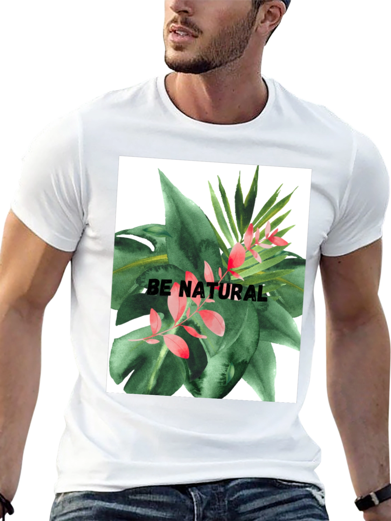 Embrace nature with this stylish black graphic tee. The shirt features a vibrant, eye-catching tropical plant design with pink floral accents and the inspiring message "Be Natural". Made from comfortable, breathable fabric, this tee is perfect for casual wear, adding a touch of natural beauty to your everyday style. Ideal for nature lovers, eco-conscious individuals, or anyone who wants to make a statement with their clothing. Pair it with jeans, shorts, or a skirt for a versatile and effortlessly cool look. Show off your love for the environment with this unique and trendy piece.
