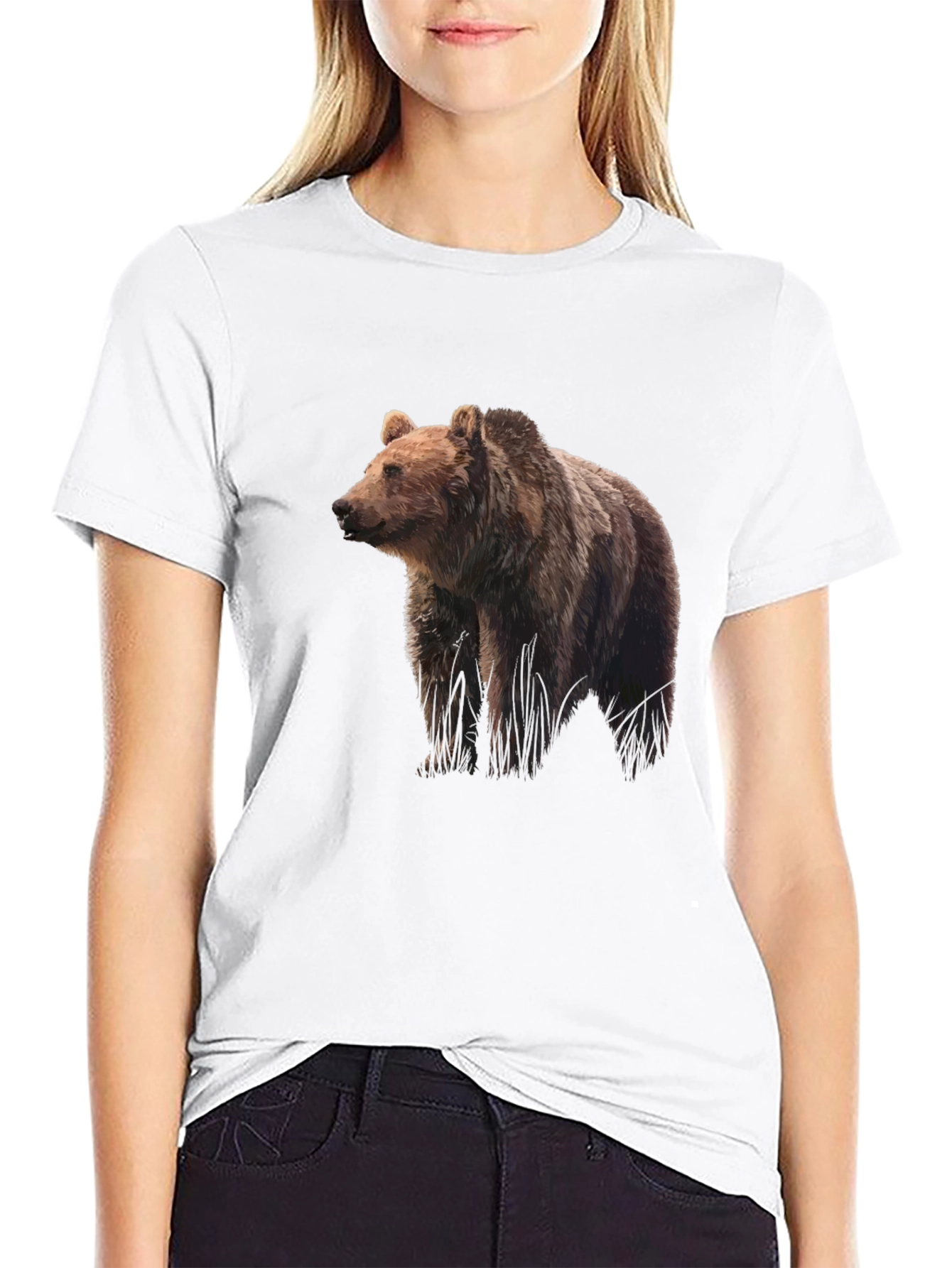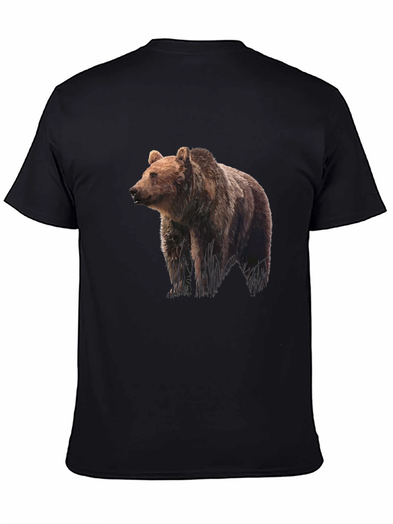 Show off your love for wildlife with this eye-catching T-shirt. Featuring a detailed graphic of a majestic brown bear, this tee is sure to make a statement. The shirt is made from a soft, breathable fabric, making it comfortable to wear all day long. Perfect for casual outings, nature enthusiasts, or anyone who appreciates unique designs. The classic black color and versatile style make it easy to pair with jeans, shorts, or your favorite casual bottoms. Add a touch of wilderness to your wardrobe with this standout bear graphic tee.