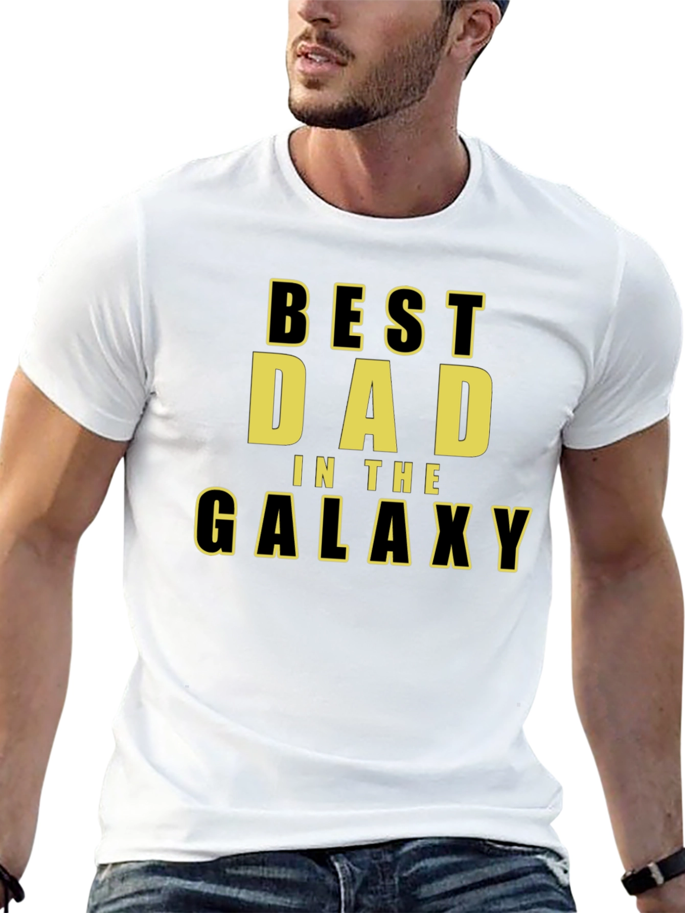Show your dad some love with this fun "Best Dad in the Galaxy" t-shirt. This black tee features a bold, yellow graphic print, making it an eye-catching addition to any casual wardrobe. Constructed from a soft, breathable fabric, it offers all-day comfort and durability. Perfect for Father's Day, birthdays, or just to let him know he's the best dad in the universe. Great for pairing with jeans, shorts, or joggers. A standout piece that’s sure to make him smile and feel appreciated!