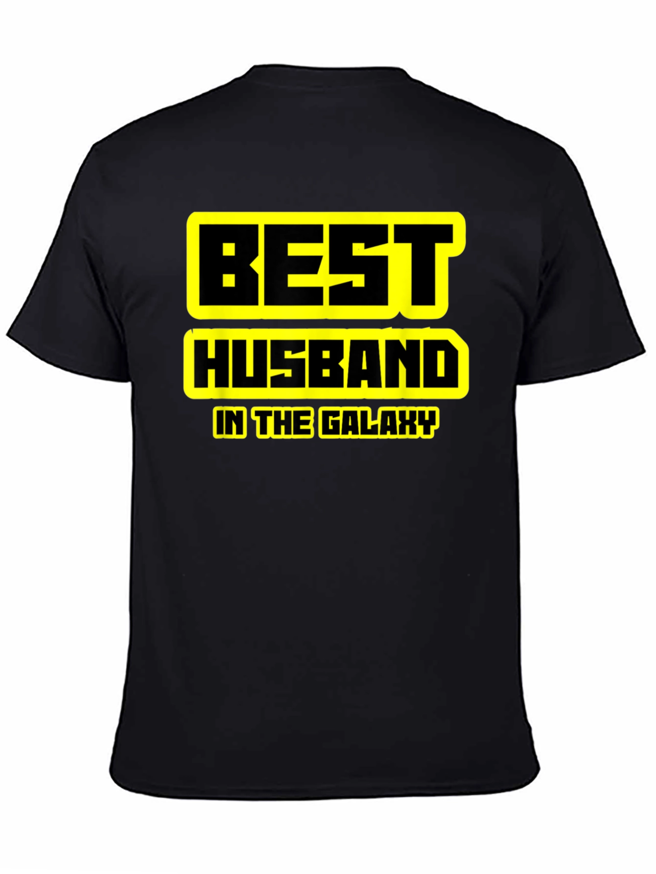 Declare your stellar status with this bold black t-shirt! Featuring the phrase 'Best Husband in the Galaxy' in eye-catching yellow, this shirt is perfect for the ultimate Star Wars loving spouse. Crafted from comfortable, breathable fabric, it offers a relaxed fit for all-day wear. The print design is reminiscent of classic sci-fi typography, adding a touch of retro cool. Show off your playful side and let the universe know who the best husband is with this unique and fun t-shirt. Ideal for casual outings, movie nights, or just lounging at home, it's a must-have for any galactic guy's wardrobe.