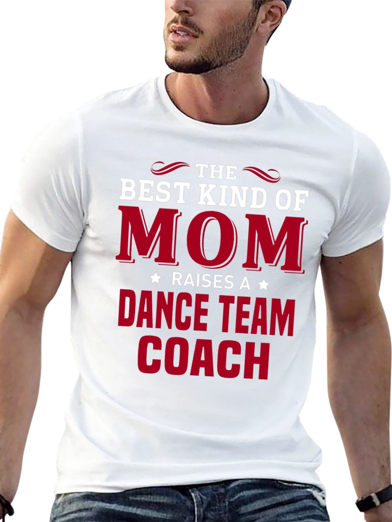 Show your pride with this stylish black t-shirt! The design features bold, eye-catching red and white text that reads "The Best Kind of Mom Raises A Dance Team Coach". Made from comfortable, breathable fabric, this tee is perfect for everyday wear. Ideal for dance moms who support their kids. This t-shirt makes a statement. Wear it to dance competitions, team events, or casual outings to show off your dedication and support. A great gift idea for the proud dance mom in your life!