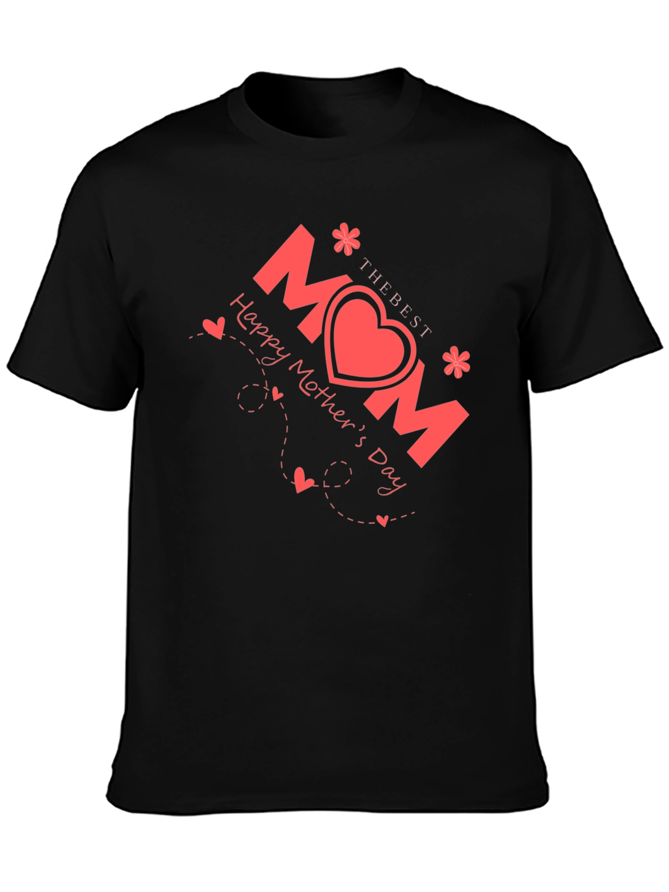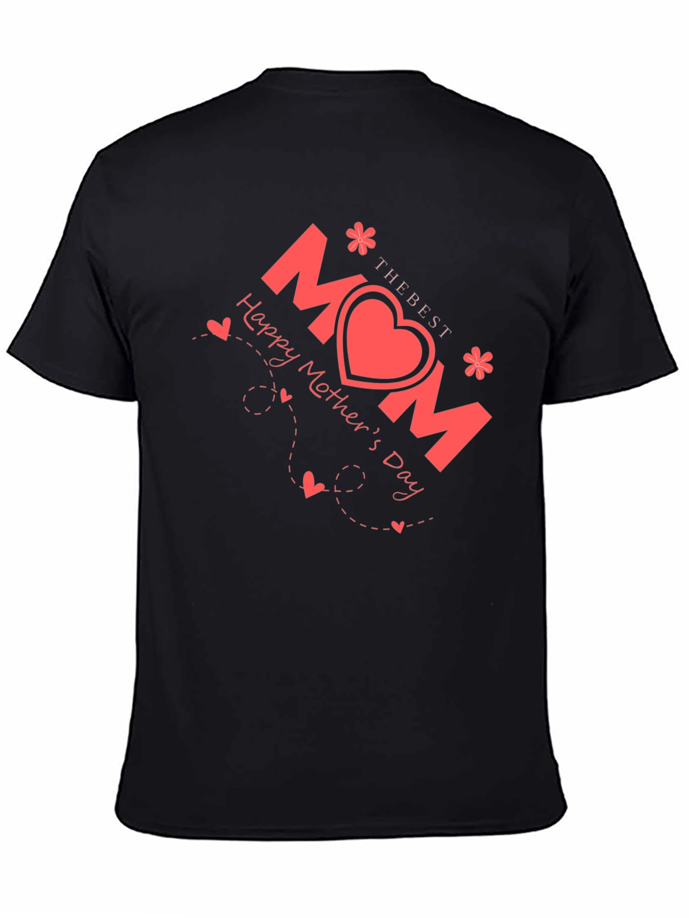 Celebrate the best mom ever with this stylish and heartfelt t-shirt! The black tee features a vibrant red design with the word "MOM" creatively displayed with a heart in the middle. Accompanying the design are sweet details like decorative hearts and floral accents, enhancing its charm. Perfect for showing your love and appreciation on Mother's Day or any day you want to make her feel special. This comfortable and fashionable t-shirt is a wonderful gift that any mom would cherish. Show the world how much you love her!