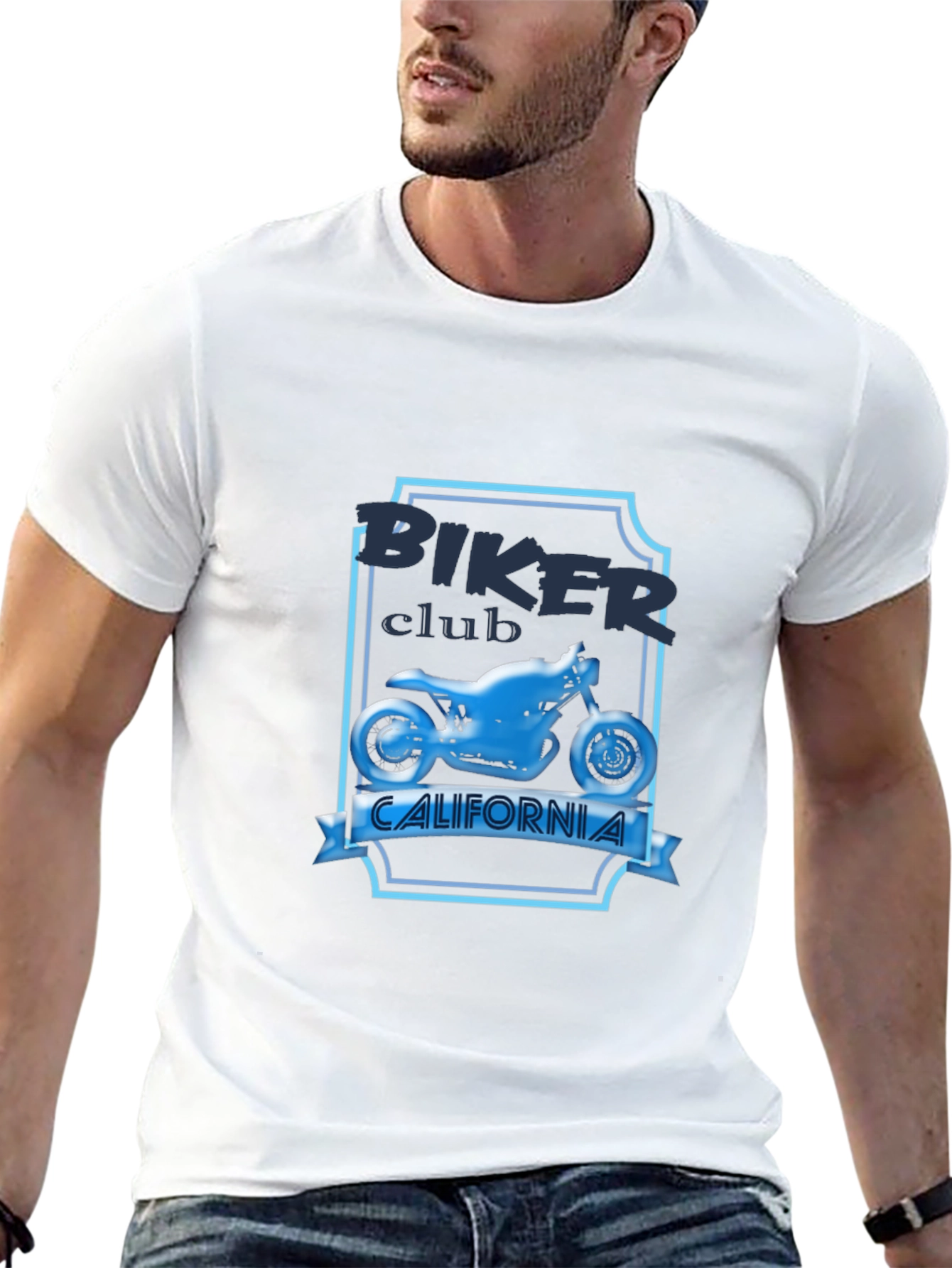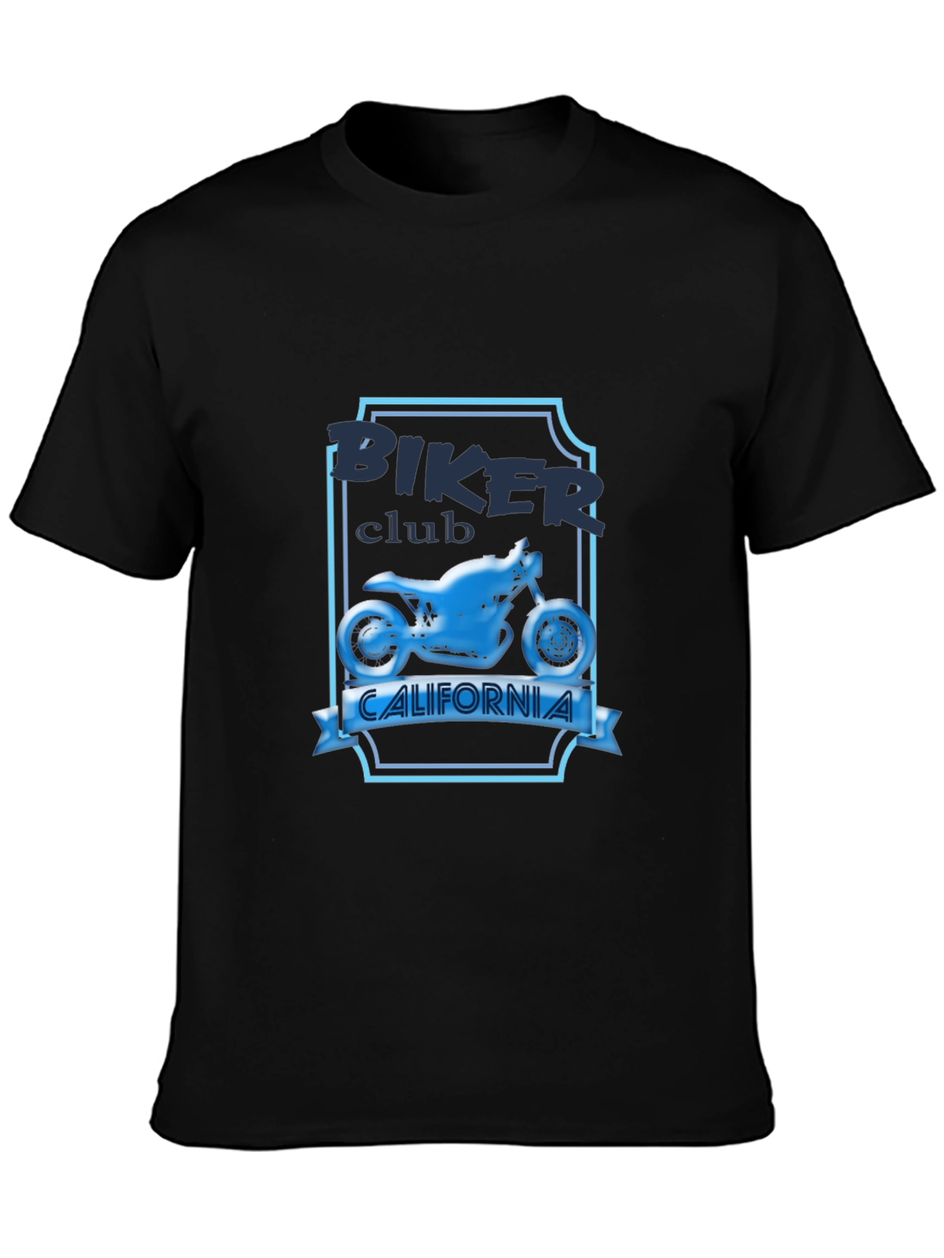 Showcase your love for motorcycles with this stylish black t-shirt. This tee features a blue graphic of a classic motorcycle and the words "Biker club California". The shirt is perfect for casual wear, motorcycle events, or as a gift for the motorcycle enthusiast in your life. The design is eye-catching and makes a statement. This shirt will become a go-to in your wardrobe. Made from comfortable materials and is machine washable.
