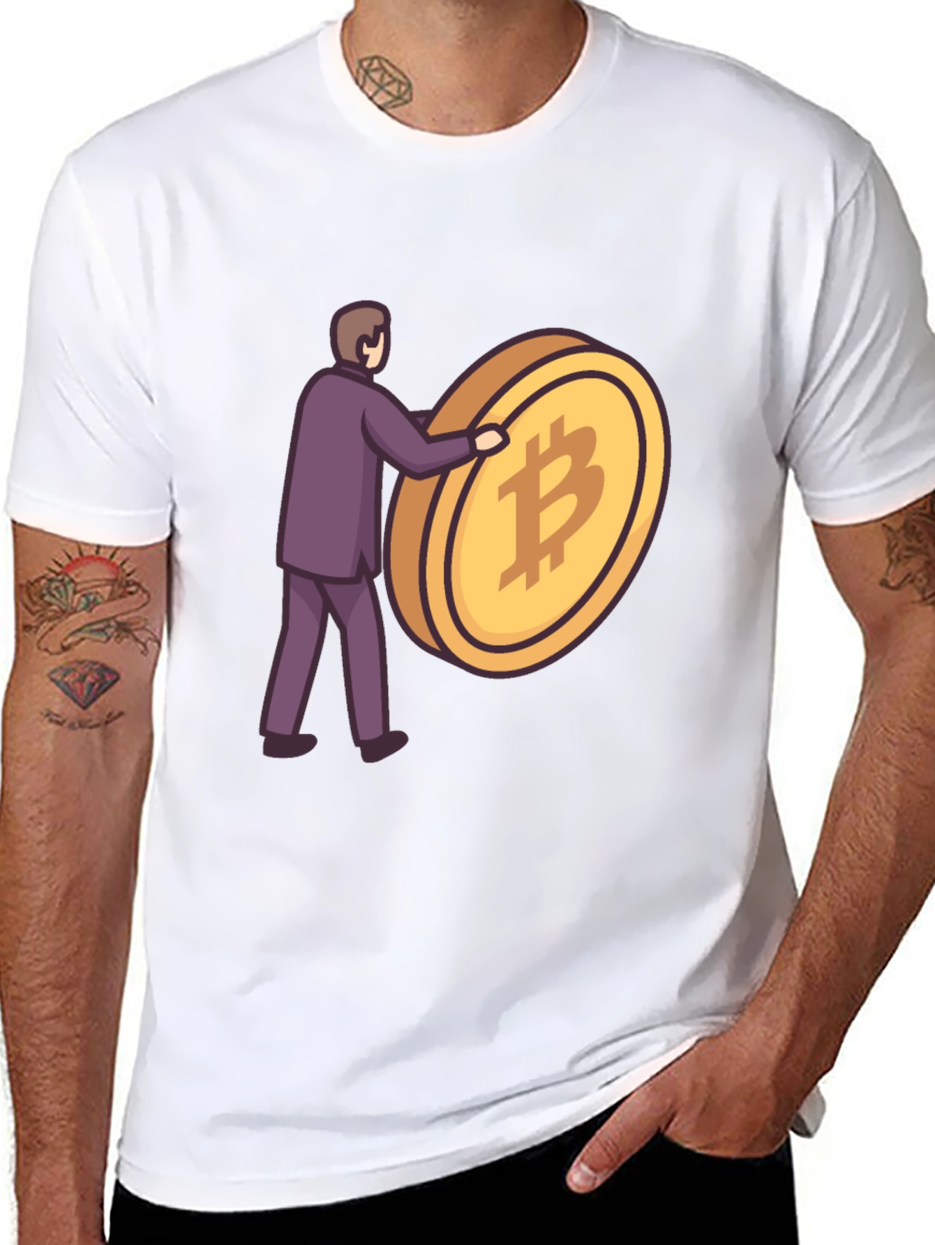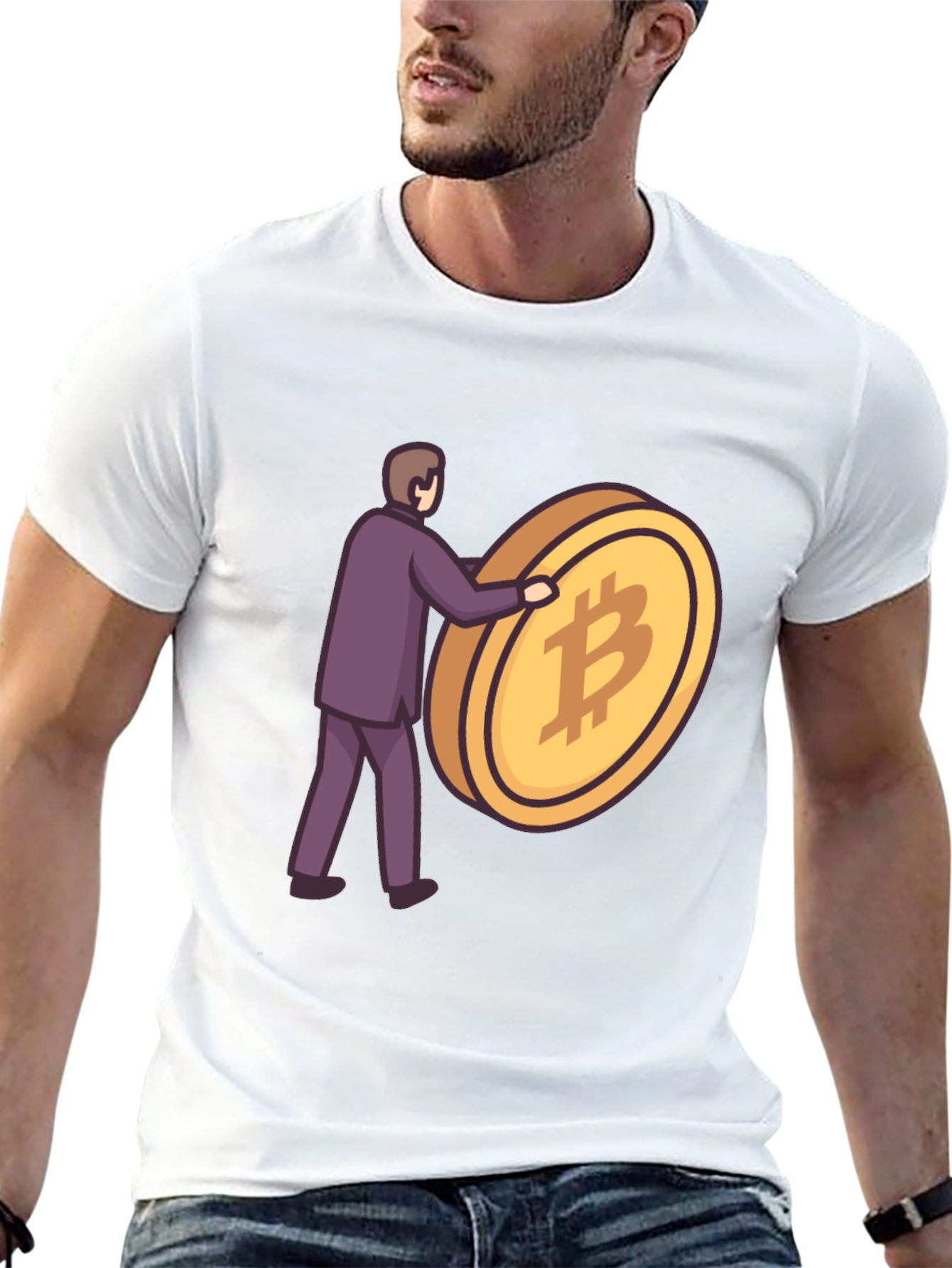Show off your crypto enthusiasm with this eye-catching Bitcoin Boss T-shirt! Made from a soft, comfortable fabric, this black tee features a bold graphic of a figure pushing a large Bitcoin. The design is fun and unique, making it a great conversation starter for cryptocurrency enthusiasts. Ideal for casual wear, crypto meetups, or as a gift for the Bitcoin investor in your life. This shirt is a great way to express your passion for digital currency and make a statement about your financial interests. Get yours today and let the world know you're part of the crypto revolution!