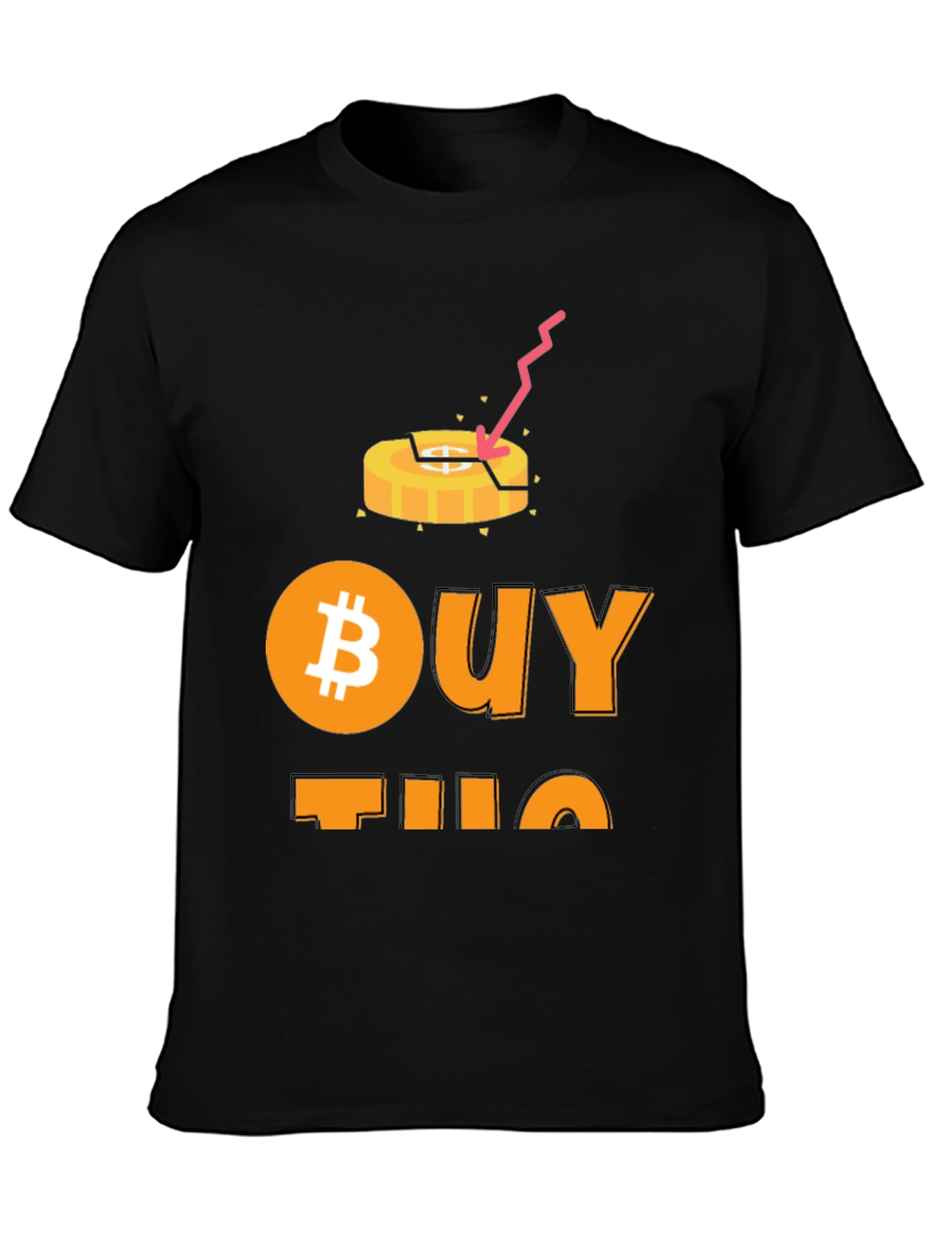Show off your investment savvy with this Bitcoin 'Buy the Dip' T-shirt. This black shirt features a bold graphic design, incorporating a cracked Bitcoin coin with a descending chart line, emphasizing the 'Buy the Dip' investment strategy. Made from a comfortable-looking fabric, this tee is perfect for casual wear. Ideal for crypto enthusiasts, investors, or anyone who wants to display a sense of humor about the market. Wear it to conferences, meetups, or everyday outings to spark conversation and show off your investment flair. Let the world know you're ready to buy!