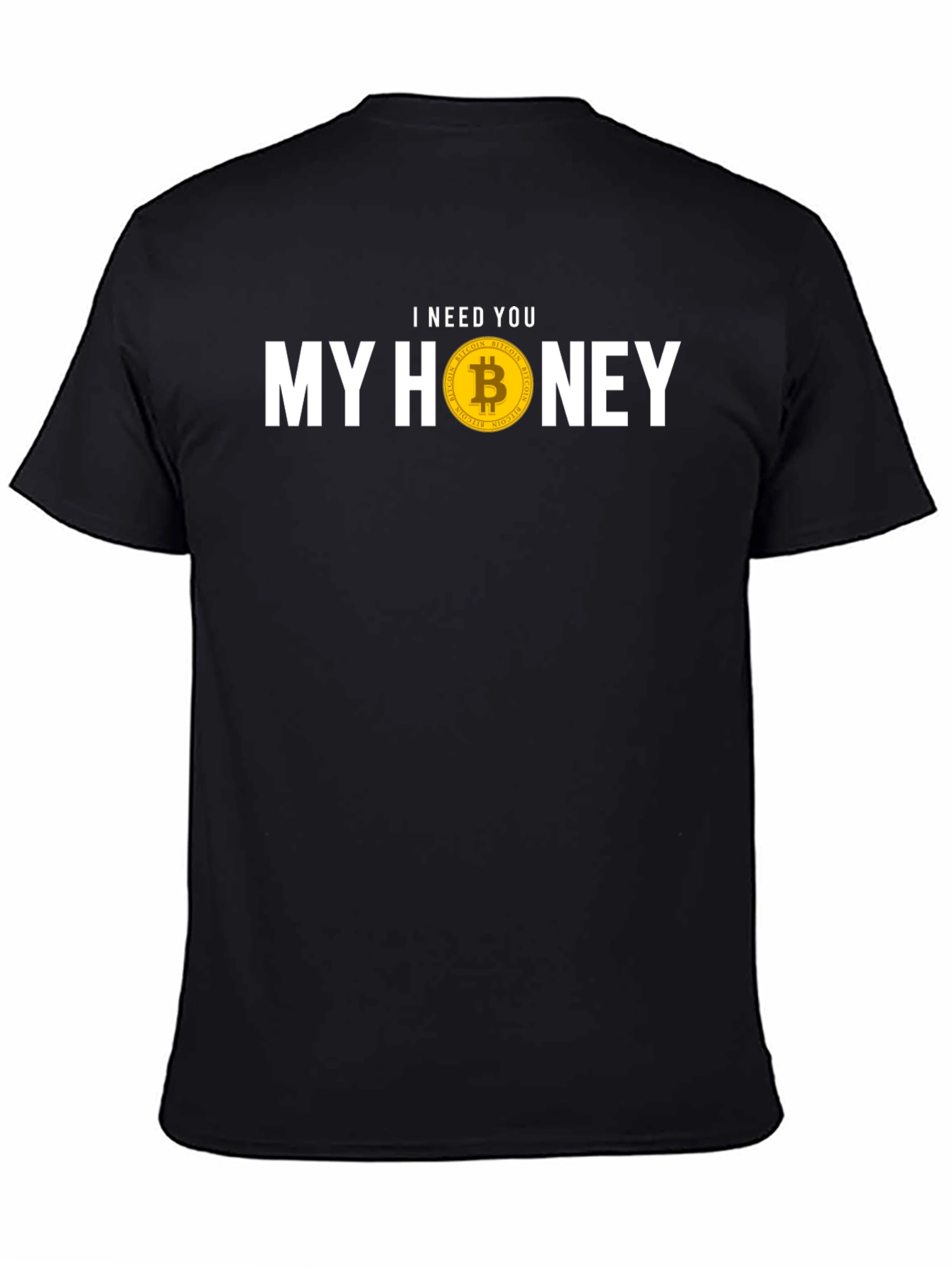 Show off your love for cryptocurrency with this unique "I Need You My Honey" t-shirt. This black tee features a clever play on words, replacing the 'O' in Honey with the iconic Bitcoin symbol. Made from a comfortable, breathable fabric, this shirt is perfect for everyday wear, crypto meetups, or as a conversation starter. The bold white lettering contrasts sharply against the black background, making the design pop. Ideal for bitcoin enthusiasts, crypto investors, or anyone who appreciates a funny and stylish tee. Get yours today and let everyone know you're serious about your digital currency!