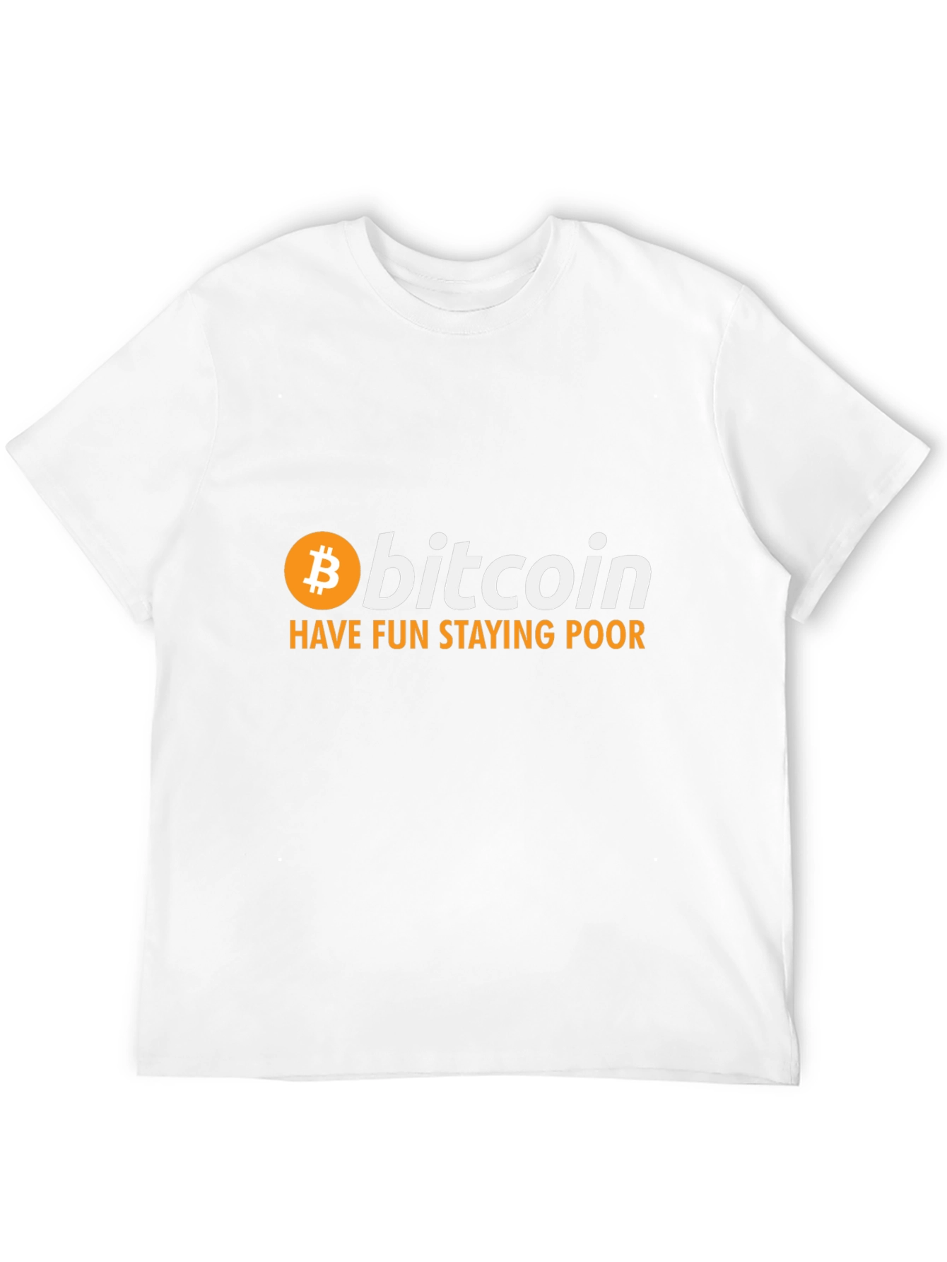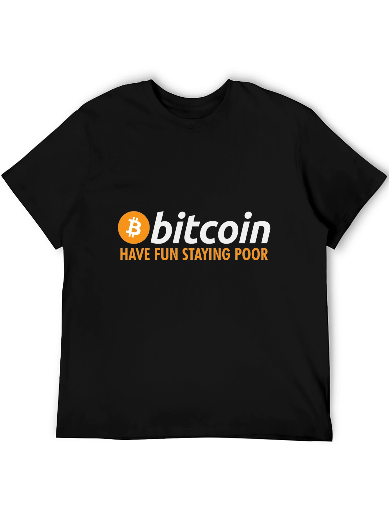 Show off your love for cryptocurrency with this Bitcoin-themed t-shirt. This stylish black tee features the Bitcoin logo and the humorous phrase "HAVE FUN STAYING POOR" printed in a contrasting color. Made from what appears to be a comfortable and breathable cotton blend, this shirt is perfect for casual wear, crypto meetups, or making a statement about the future of finance. Wear it proudly and let everyone know you're part of the digital revolution. This tee makes a great conversation starter and a fun gift for any Bitcoin enthusiast. Get yours today and join the crypto movement!