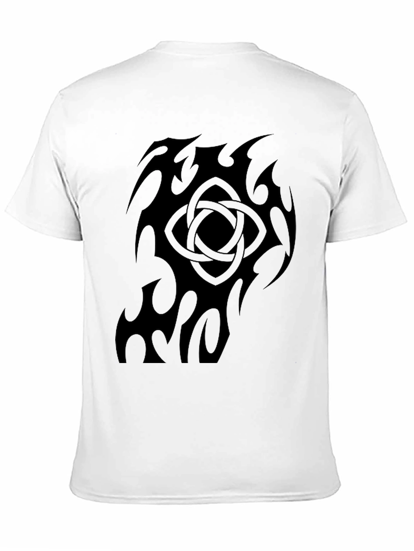 Embrace bold style with this black t-shirt featuring a striking Celtic knot and tribal graphic design. The shirt is made from a comfortable, lightweight fabric, perfect for everyday wear. The design is printed on the front and the shirt is a standard fit. The black color makes it versatile to pair with jeans, shorts, or casual pants. Whether you are going for a casual outing or a relaxed weekend look, this Celtic knot tribal graphic t-shirt adds a touch of unique flair to your outfit. It's also a great gift for those who appreciate Celtic or tribal art.
