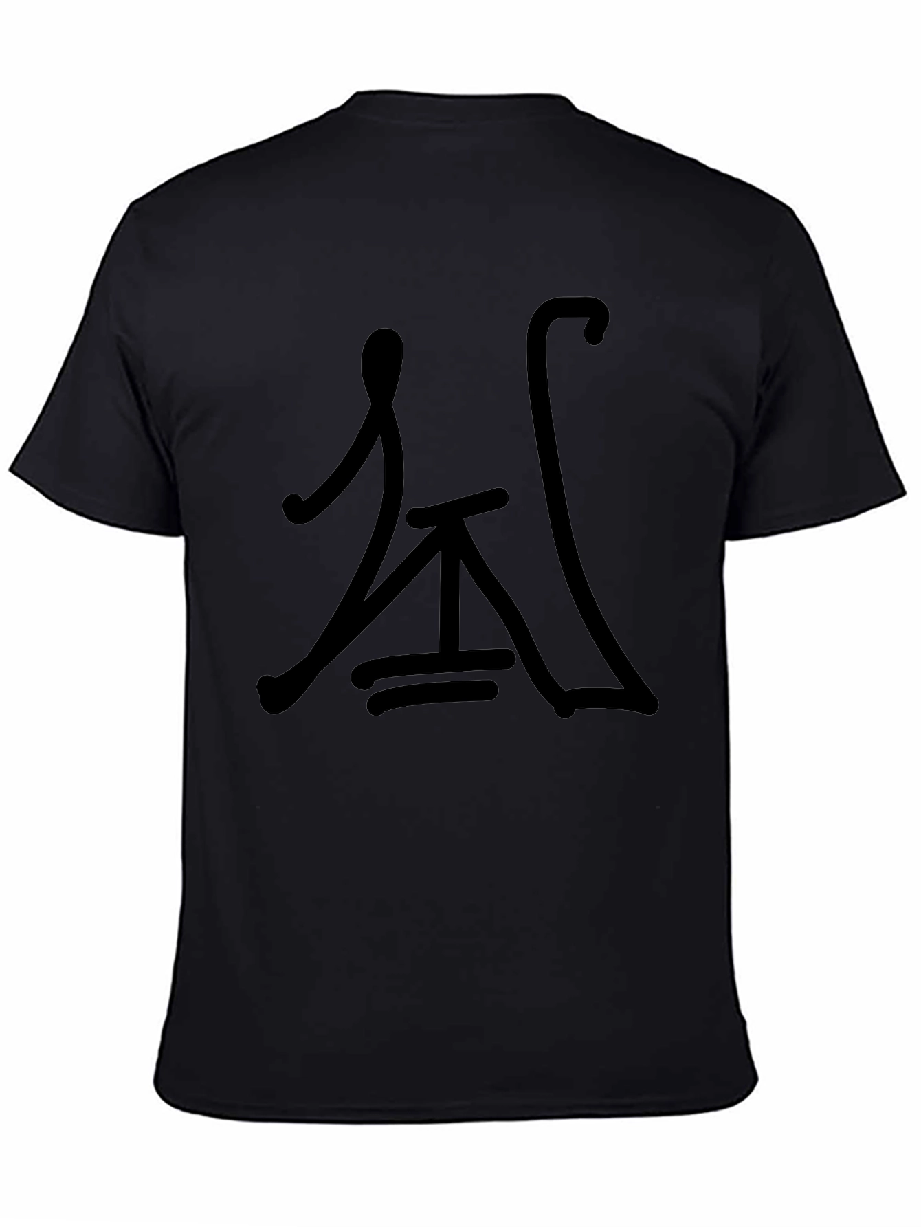 Showcase your unique style with this striking black t-shirt. The shirt features a bold, abstract symbol in black, creating a minimalist yet eye-catching design. Made from what appears to be a comfortable and breathable cotton blend, this tee offers a relaxed fit perfect for everyday wear. The design stands out without being too loud. Ideal for casual outings, layering, or simply lounging at home. Pair it with jeans, shorts, or joggers for a versatile look. This tee makes a subtle statement and adds an artistic touch to your wardrobe. A must-have for those who appreciate unique and understated fashion.