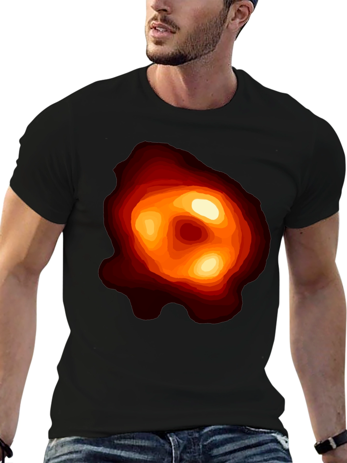 Explore the cosmos with this unique black t-shirt featuring a vibrant graphic of a black hole. The layered design in shades of orange, yellow and dark red gives it a 3D effect that will make you stand out. Made from soft and comfortable fabric, this tee is perfect for everyday wear or special occasions. Show off your love for astronomy, physics, and space exploration with this eye-catching shirt. This tee is ideal for casual wear, science events, or as a thoughtful gift for the astronomy enthusiast in your life. Get yours today and boldly go where no one has gone before!