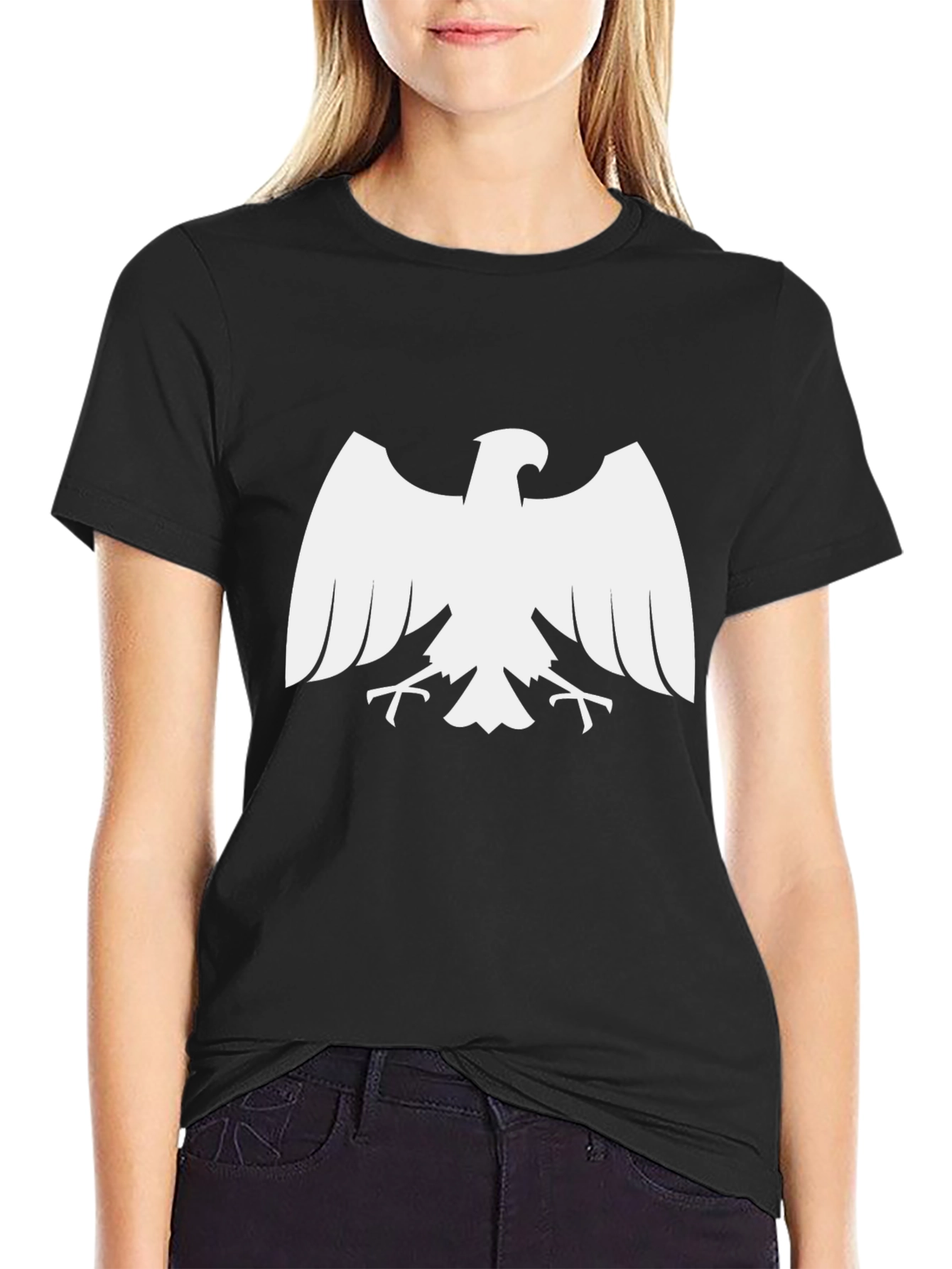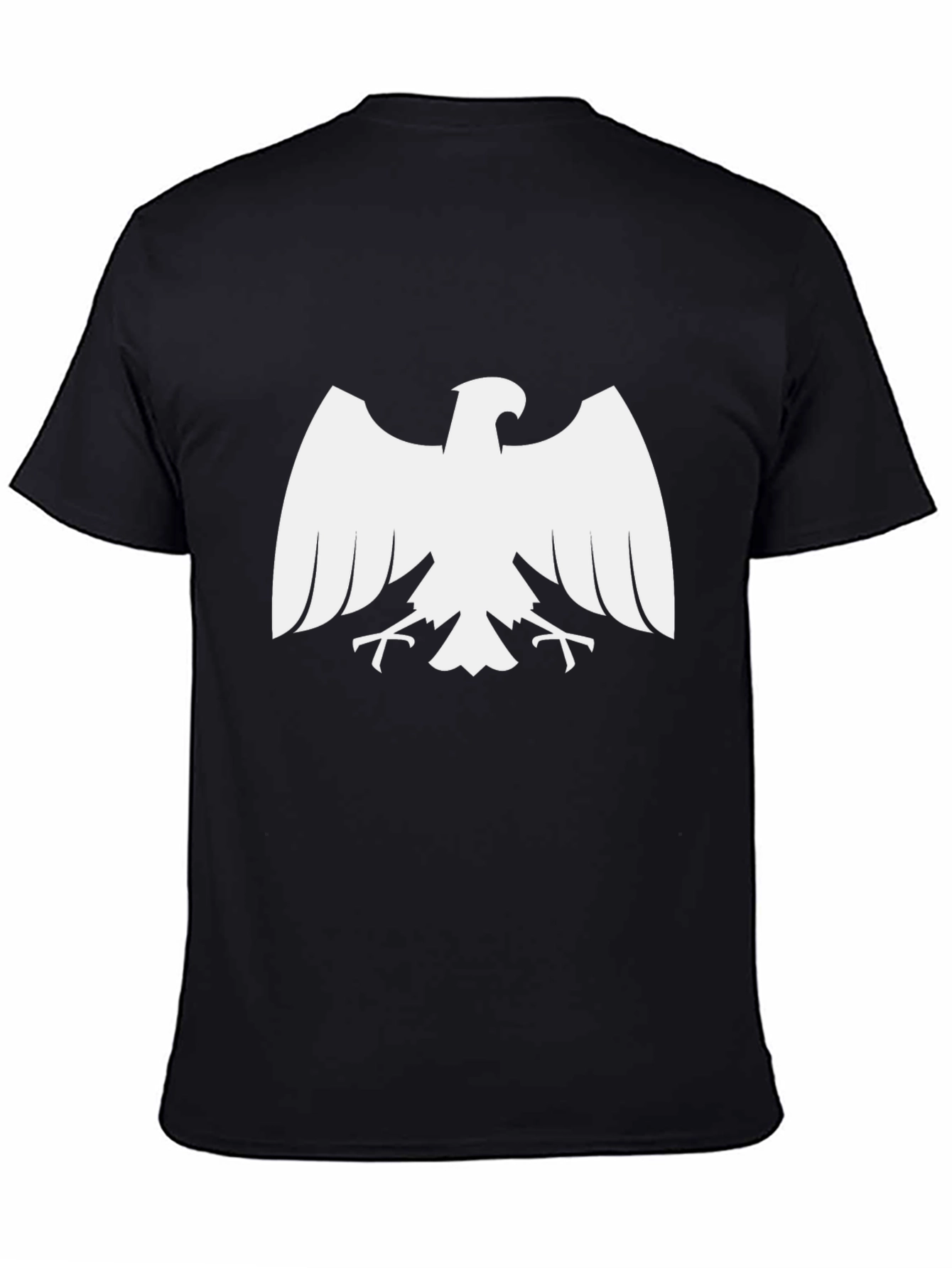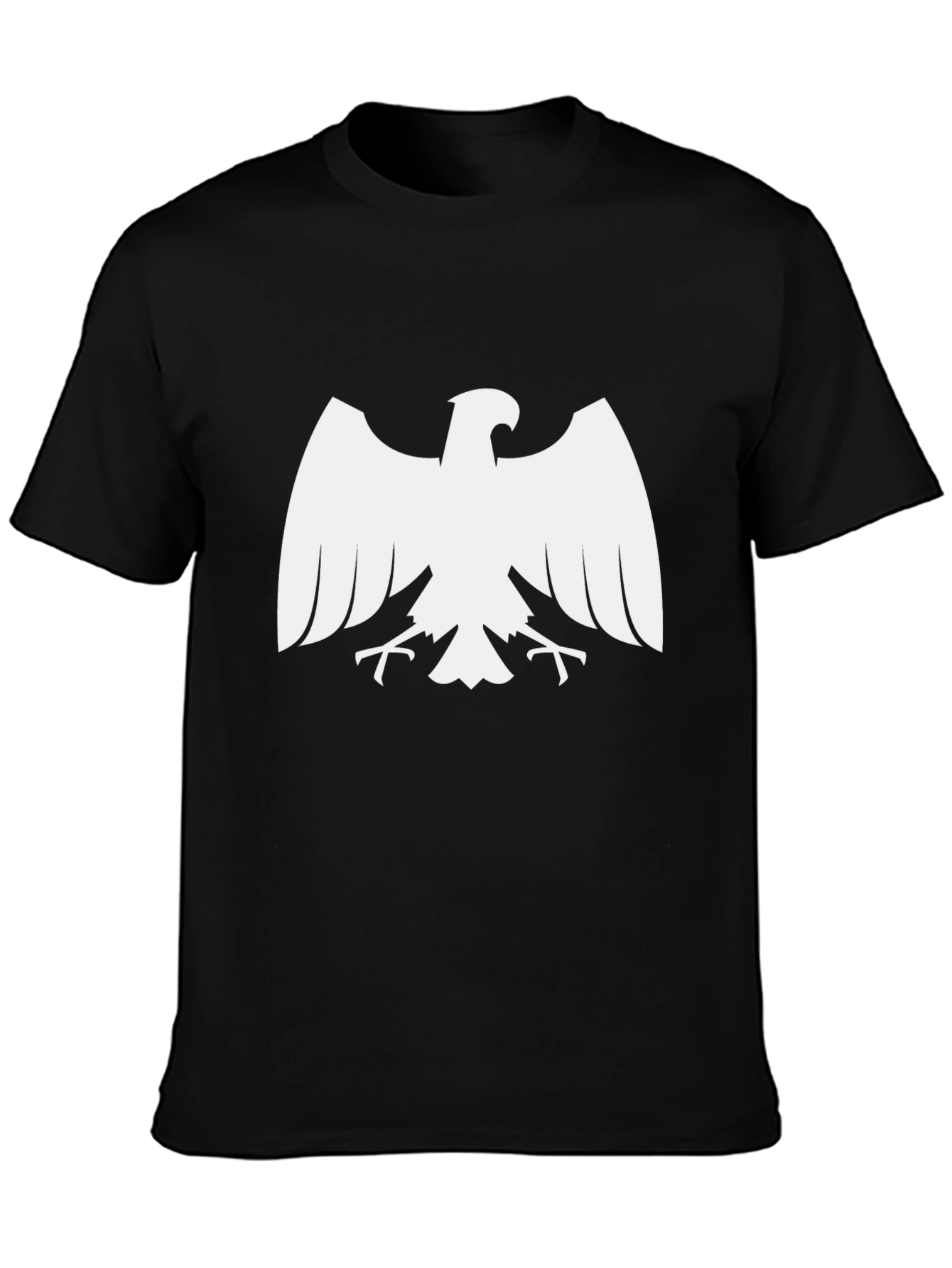 Make a bold statement with this classic black t-shirt featuring a striking white eagle graphic. Crafted from a comfortable-looking fabric, this short-sleeve tee offers a relaxed fit. The eye-catching eagle design adds a touch of individuality, making it a perfect choice for casual wear. Ideal for everyday outings, concerts, or simply lounging around, this t-shirt combines style and comfort effortlessly. Show off your unique personality with this wardrobe essential. It is suitable for everyday use.