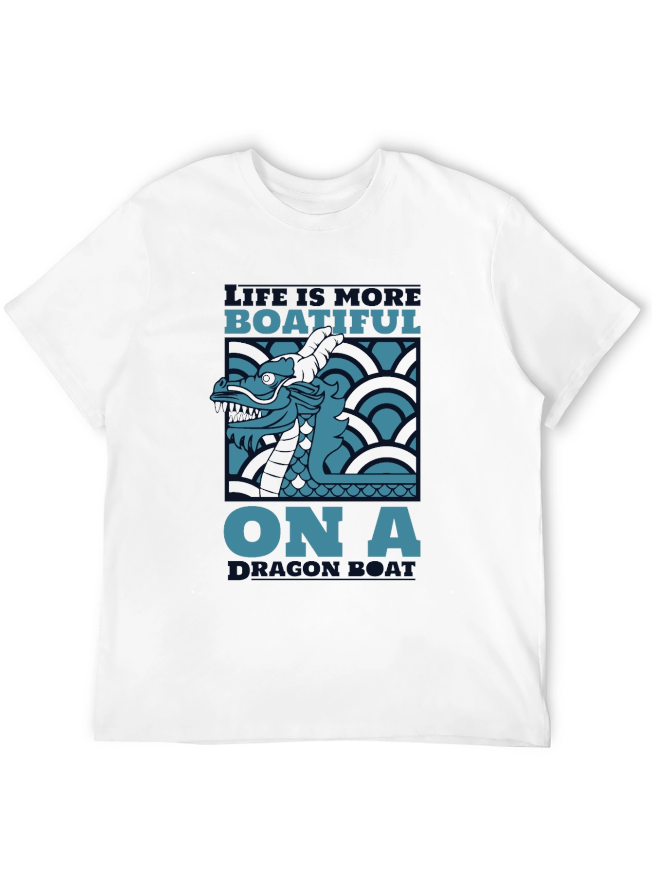 Ride the waves in style with this unique "Life is More Boatiful On A Dragon Boat" graphic tee. The shirt features a stylized dragon boat illustration in blue tones, making it a standout piece. Crafted from soft, breathable fabric, this tee ensures all-day comfort. Perfect for dragon boat enthusiasts, casual outings, or making a statement about your love for boating. This eye-catching tee is sure to turn heads and spark conversations wherever you go. Show off your passion for dragon boating with this must-have addition to your wardrobe. Get yours today and embrace the boatiful life!