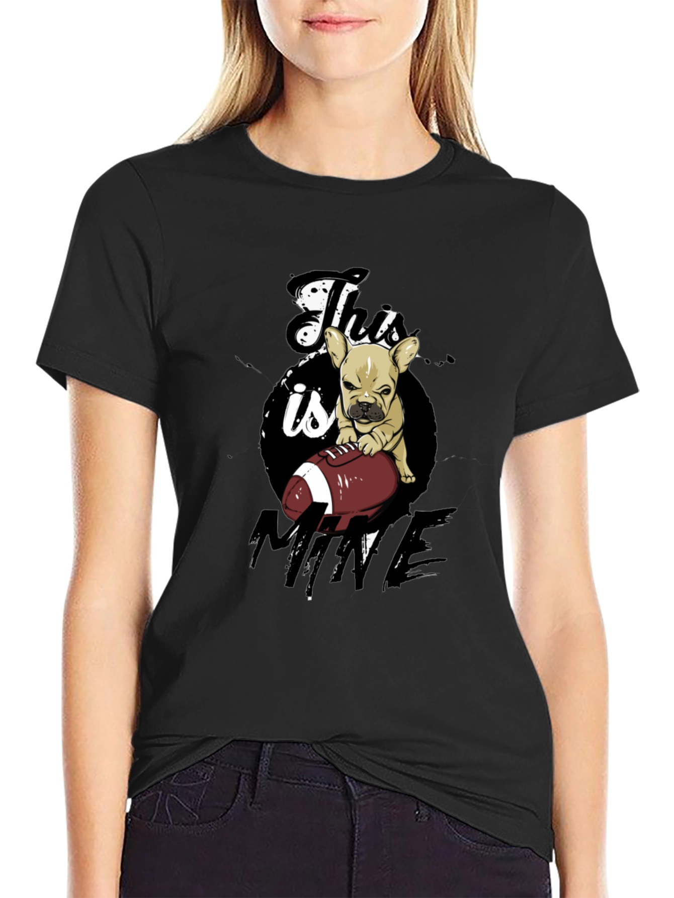 Score big with this eye-catching black t-shirt featuring a determined bulldog perched atop a football. The design boldly declares "This is Mine!" making it a playful and spirited choice for sports enthusiasts and dog lovers alike. Crafted from a comfortable, breathable fabric, this tee is perfect for casual wear, game days, or showing off your unique style. The crisp graphic print ensures a lasting impression, while the classic fit provides all-day comfort. Grab yours today and let everyone know who the real MVP is!