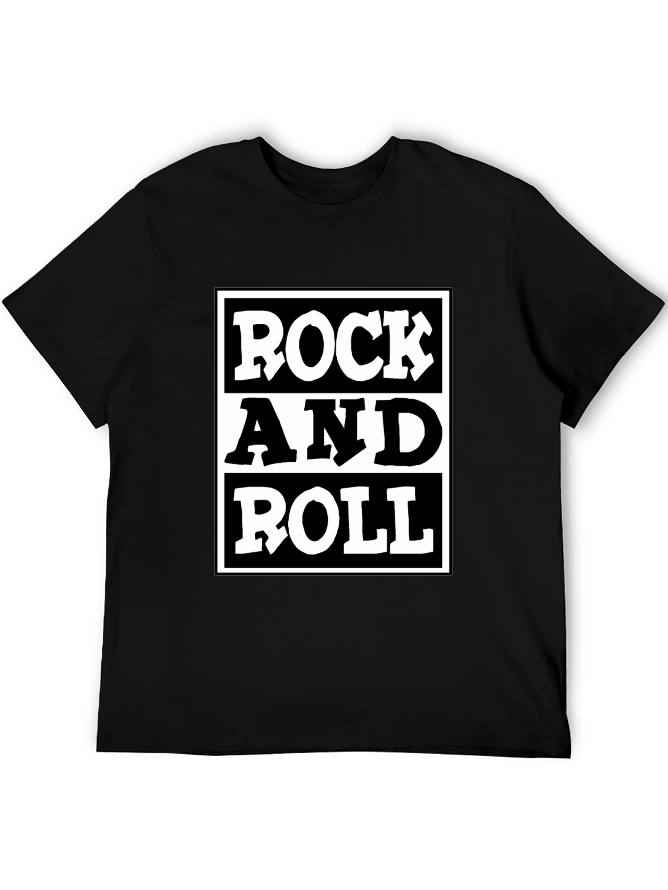 Rock your style with this classic black t-shirt. This tee features a bold "ROCK AND ROLL" graphic in white, encased in a crisp white rectangle. The design is eye-catching and perfect for music lovers and casual wear. The shirt appears to be made from a comfortable, breathable fabric, making it ideal for everyday use. Whether you're heading to a concert, hanging out with friends, or just want to express your love for rock music, this t-shirt is a great choice. It's a stylish and versatile piece that will add a touch of rebellious flair to your wardrobe. A must-have for any rock and roll enthusiast!