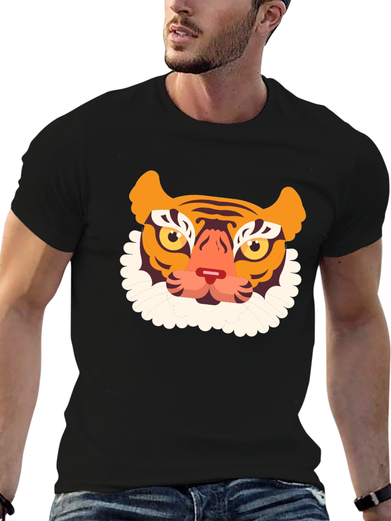 Roar into style with this eye-catching black t-shirt featuring a bold tiger graphic! The design showcases a playful, cartoon-style tiger face with bright orange and white accents. Made from a comfortable-looking fabric, this tee is perfect for everyday wear. Its classic fit and short sleeves make it a versatile addition to any wardrobe. Whether you're heading out with friends or just lounging at home, this tiger t-shirt will add a touch of fun to your look. Stand out from the crowd and express your wild side with this unique piece.