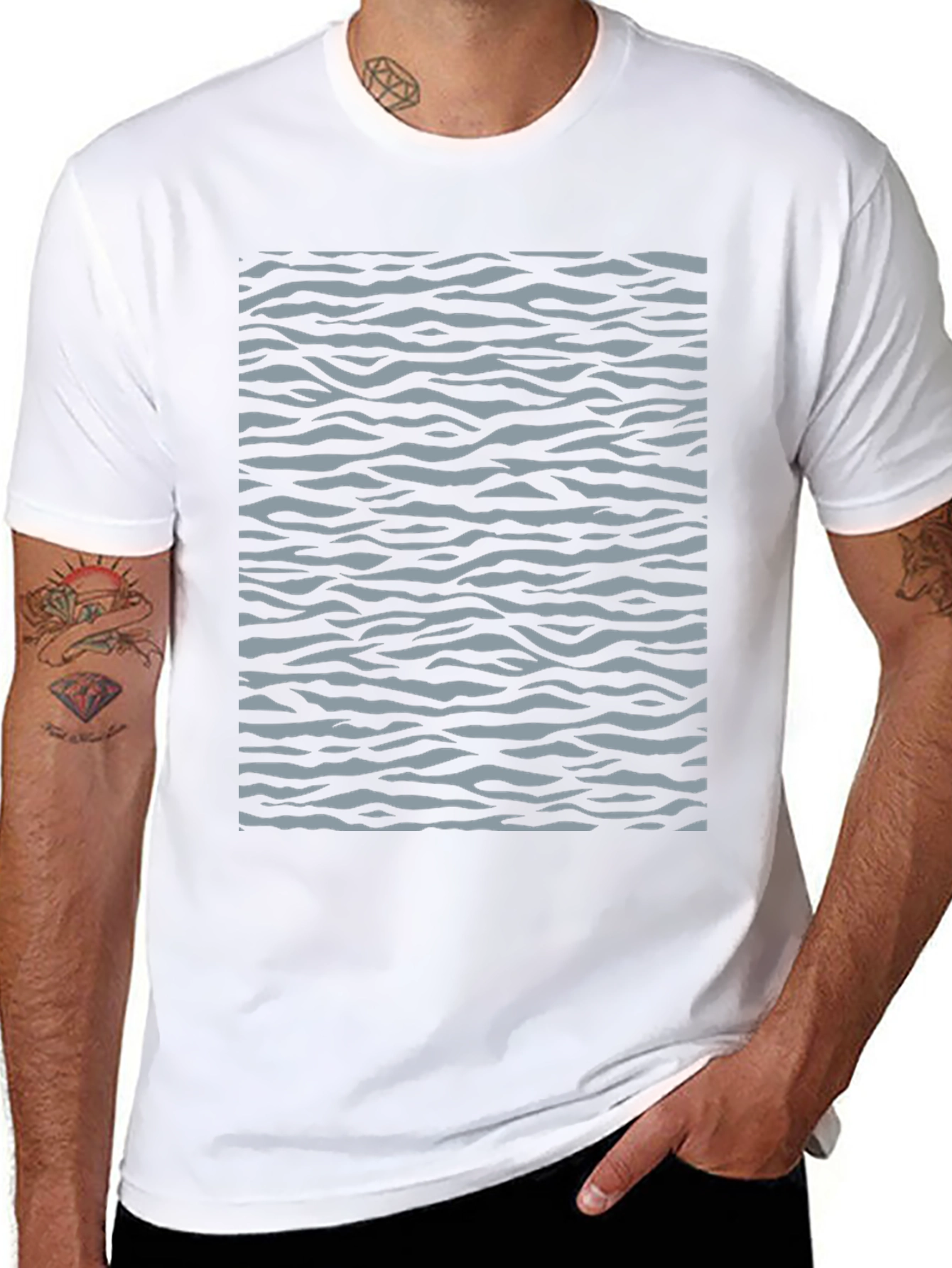Elevate your casual style with this bold black t-shirt featuring a captivating zebra stripe pattern. The unique wavy lines create a visually striking design that's sure to turn heads. Made from a comfortable, breathable fabric, this tee is perfect for everyday wear. Dress it up with jeans and a jacket, or keep it casual with shorts. Ideal for making a statement without sacrificing comfort. Add this standout piece to your wardrobe today!