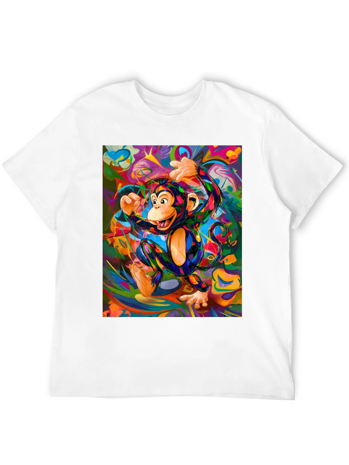 Elevate your wardrobe with this eye-catching black t-shirt featuring a vivid, psychedelic monkey design. The bold graphic showcases a cartoon monkey rendered in a spectrum of bright colors, set against an abstract background. Made from comfortable, breathable fabric, this tee offers both style and comfort. The playful and energetic design makes it perfect for casual outings, concerts, or adding a pop of color to your everyday look. Show off your fun personality and stand out from the crowd with this unique and stylish graphic tee!