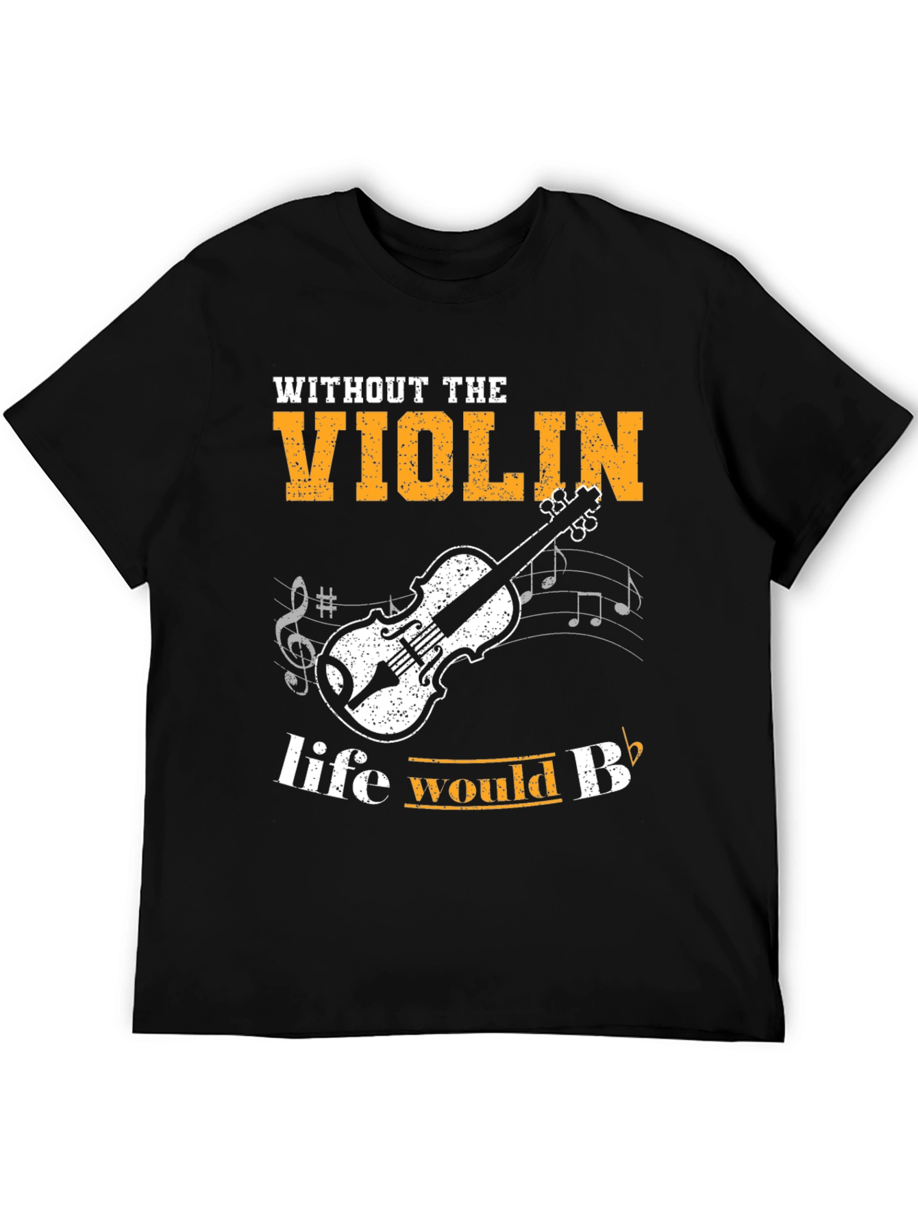 Show your love for music with this unique black t-shirt. The design features the phrase "Without the VIOLIN life would B♭" along with an illustrated violin and musical notes. Perfect for musicians, orchestra members, or anyone who appreciates the beauty of string instruments. Wear it to rehearsals, concerts, or casually to express your passion for music. Made from comfortable, breathable fabric, this shirt is ideal for everyday wear. A stylish and expressive way to share your musical interests with the world!