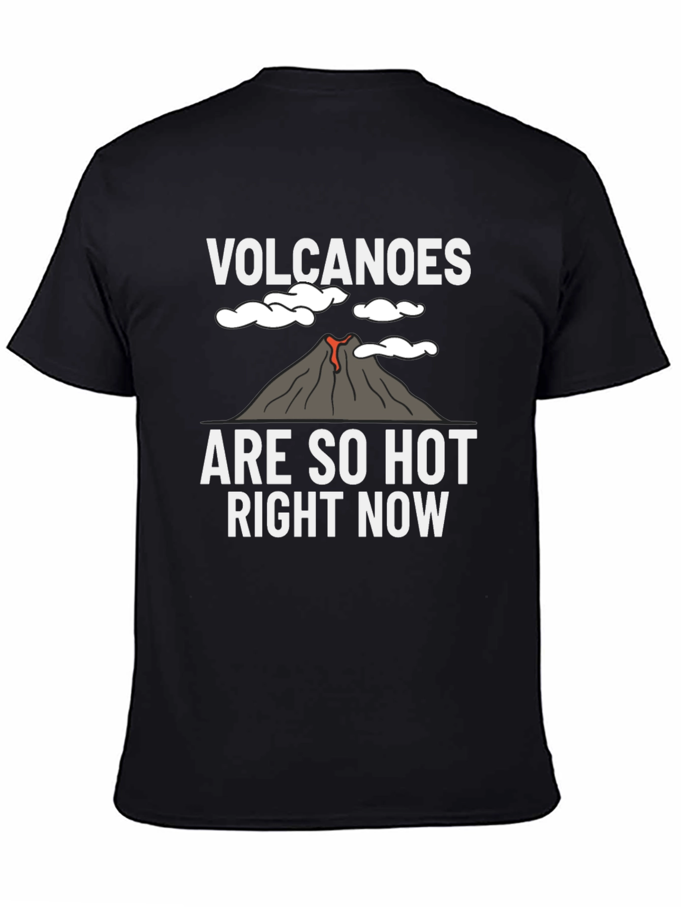 Express your love for volcanoes with this eye-catching graphic tee. Made from comfortable black fabric, this shirt features a bold design with the text "Volcanoes Are So Hot Right Now" and a cartoon volcano illustration. The clean, crisp white lettering and playful graphics make a statement. Perfect for casual wear, geology enthusiasts, or anyone with a fun sense of humor. This t-shirt is sure to be a conversation starter wherever you go. Show off your unique style and grab one today!