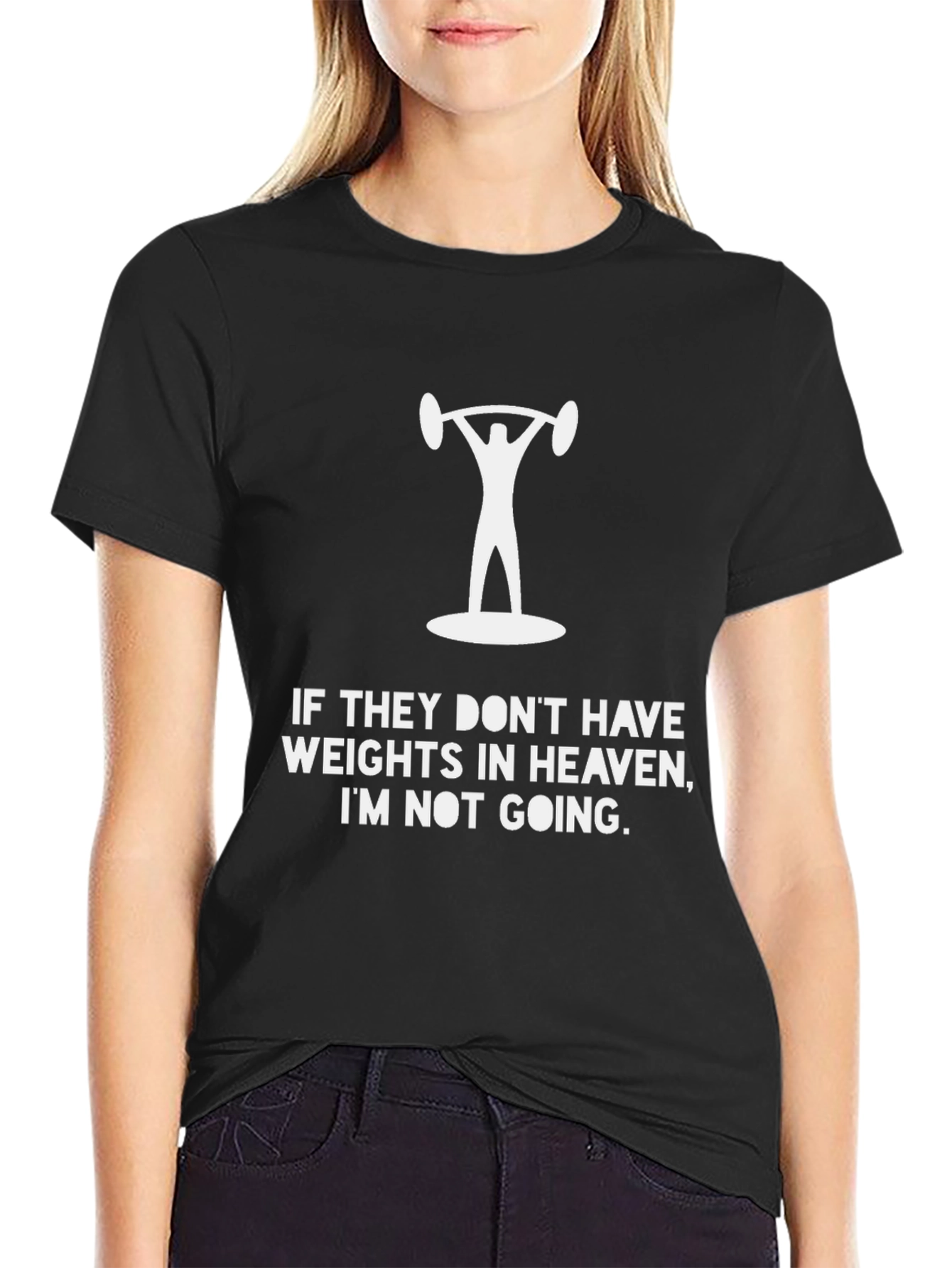 Show your love for lifting with this bold black t-shirt. Featuring a unique graphic of a weightlifter and the witty phrase "IF THEY DON'T HAVE WEIGHTS IN HEAVEN, I'M NOT GOING," this tee is perfect for gym enthusiasts and powerlifters alike. Made from a soft, comfortable fabric, it's ideal for workouts or casual wear. The design is printed in crisp white, offering a striking contrast against the black background. Durable and eye-catching, it's a great addition to any fitness lover's wardrobe. Makes a statement wherever you go, whether you're hitting the gym or hanging out with friends!